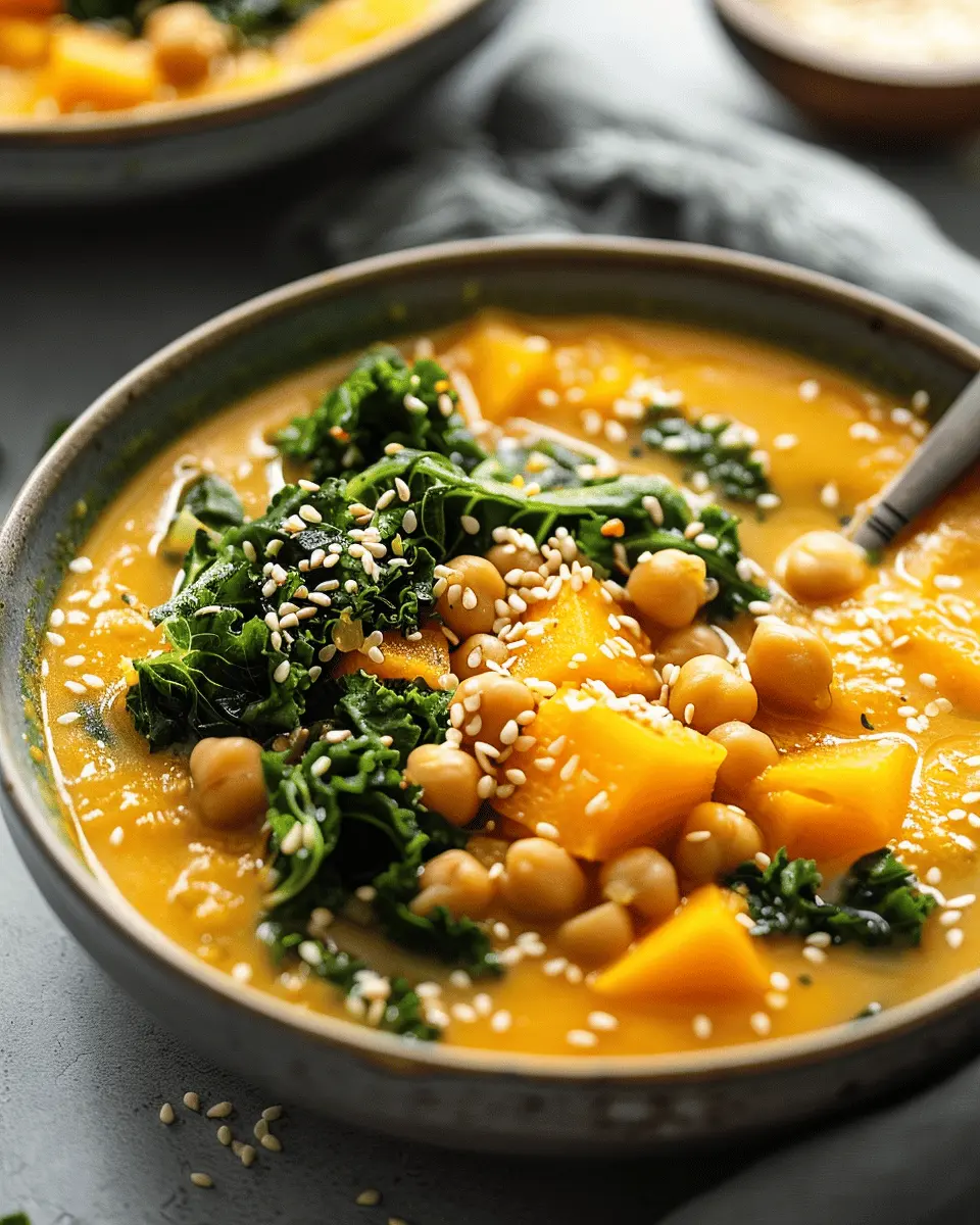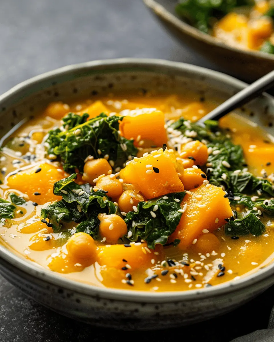 A warming and hearty soup made with kabocha squash, chickpeas, and miso, perfect for cold days.