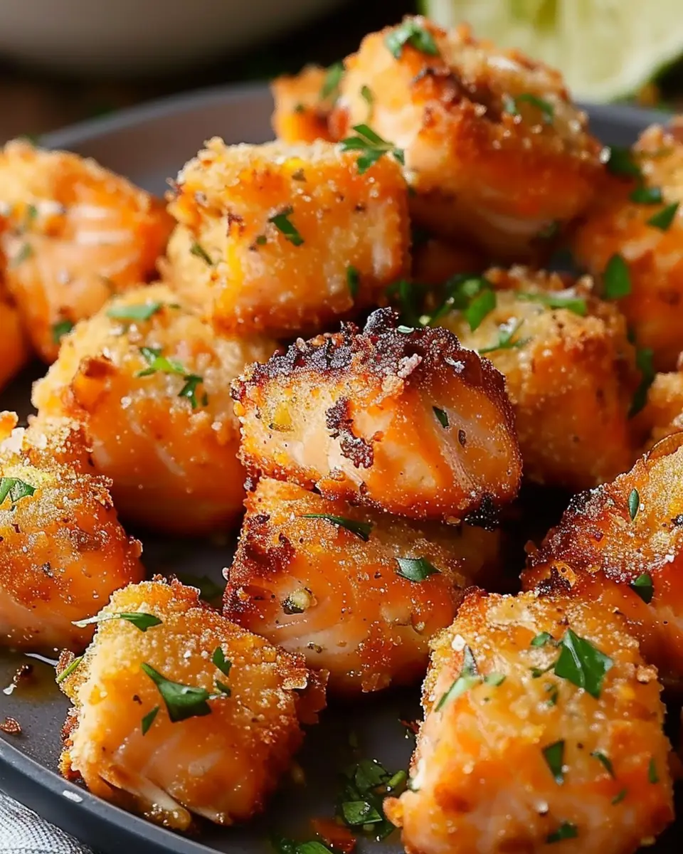 Place the coated salmon bites in a single layer in the air fryer (don’t overcrowd them) and cook for about 8-10 minutes. You’ll know they’re done when they have a beautiful golden color and a slightly crispy exterior. The magic of the air fryer is that it retains moisture while giving you that satisfying crunch!