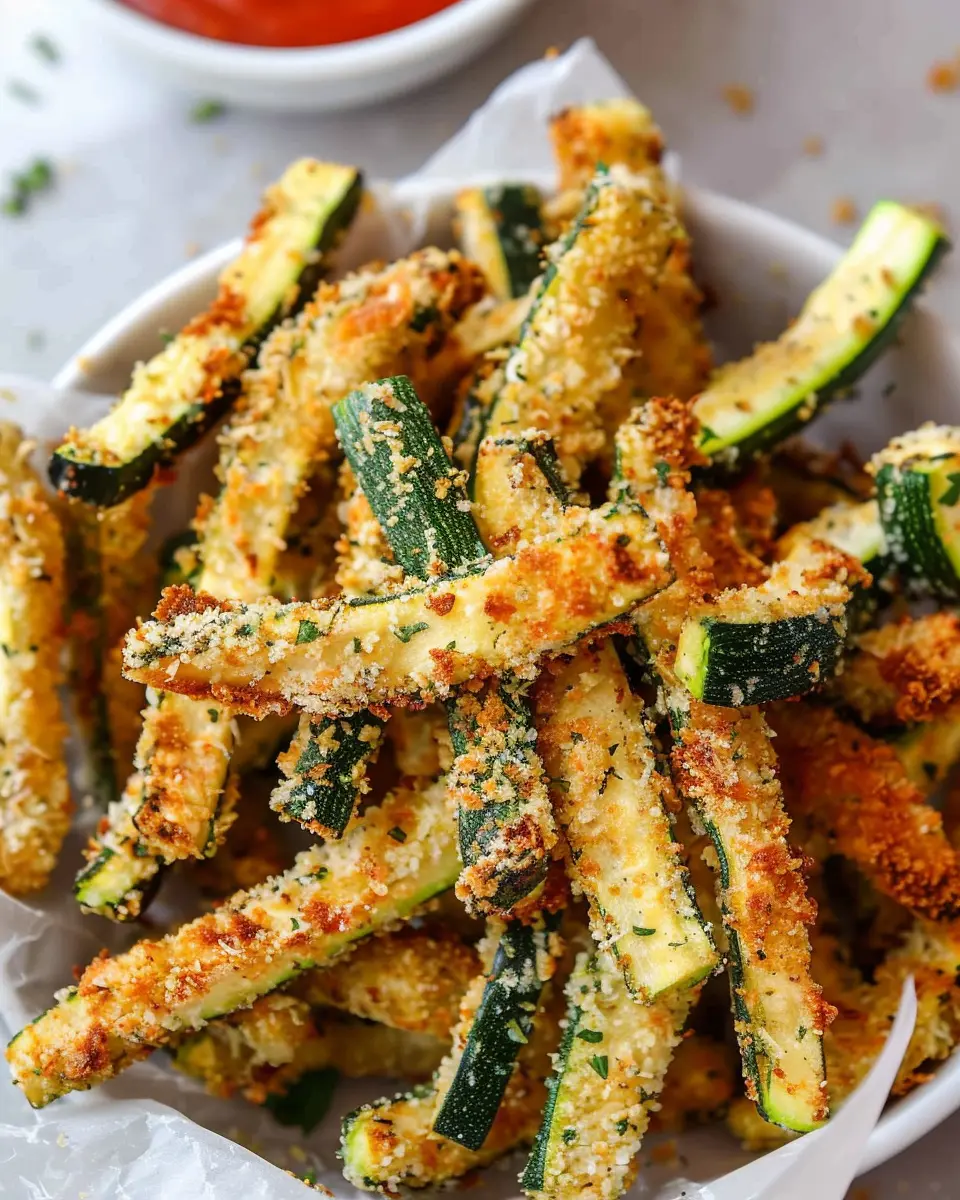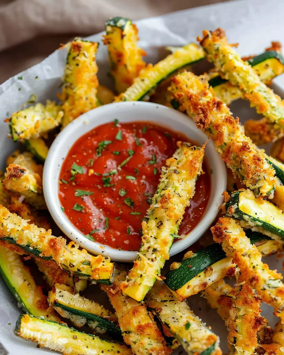 If you don’t have an air fryer, don’t worry! You can still enjoy crispy zucchini fries by baking them in the oven. Preheat your oven to 425°F (220°C), and place your breaded zucchini fries on a baking sheet lined with parchment paper. Bake for about 20-25 minutes, flipping halfway through to ensure even crisping. You can also check out some oven-baking tips on Food Network for optimal results.