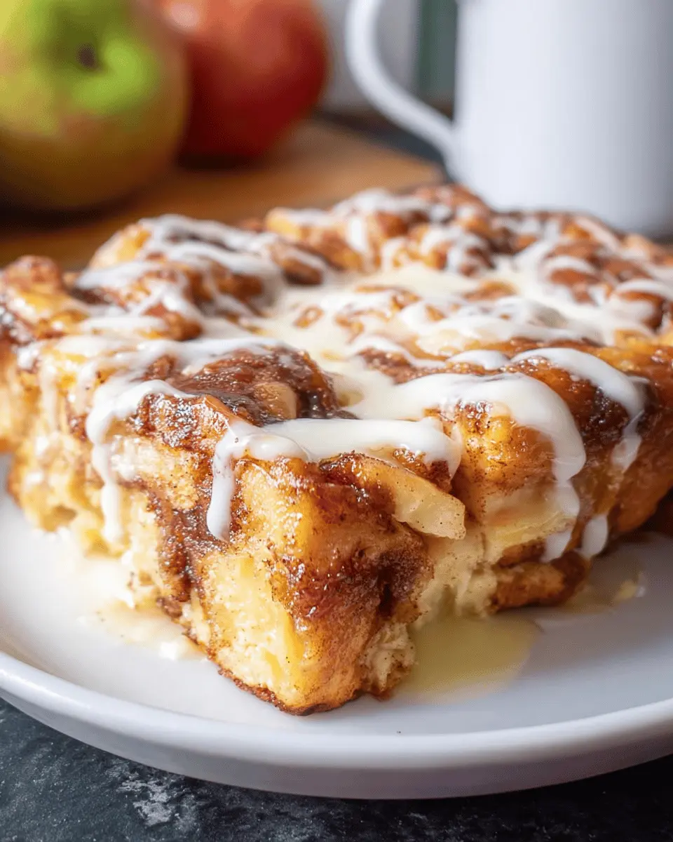 A warm and comforting dessert that combines the flavors of apple pie and cinnamon rolls in a delicious, easy-to-make casserole.