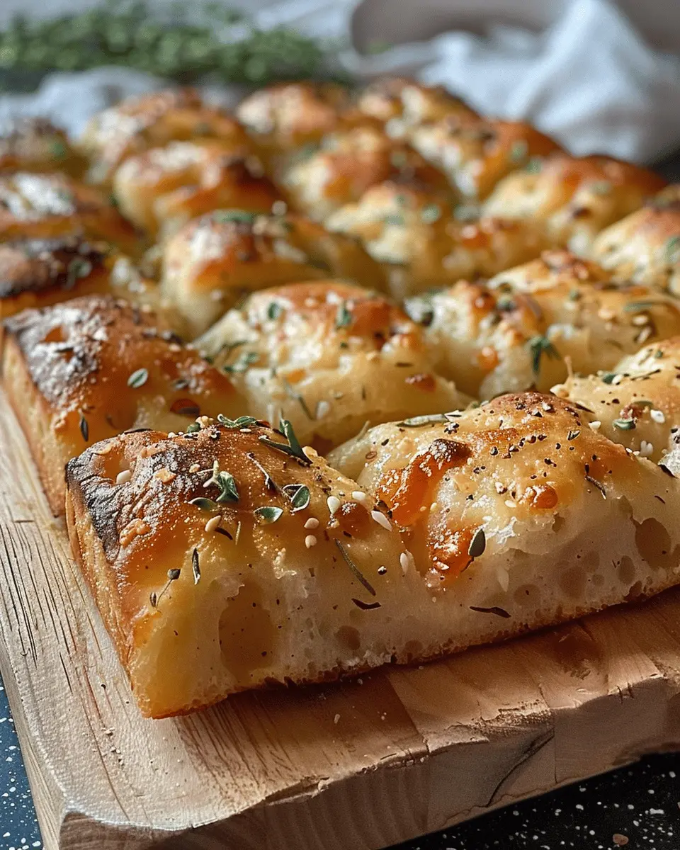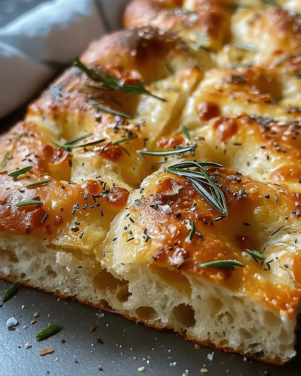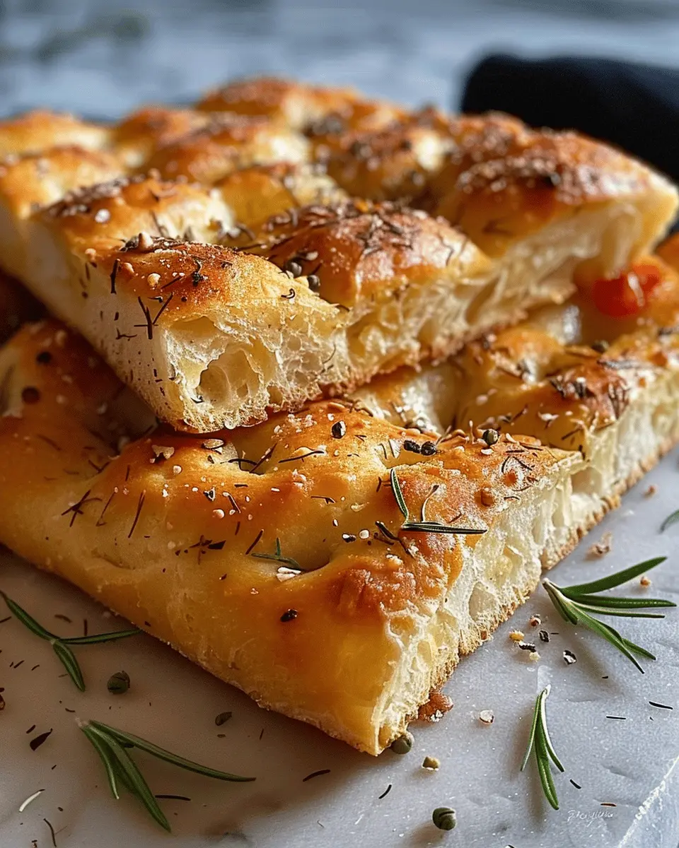 Want to take your focaccia game to the next level? Try a cheese-stuffed version! This variation adds an element of surprise with gooey, melty cheese tucked inside. As the dough rises, simply place shredded mozzarella or your favorite cheese in the center before folding in the edges. Baked to perfection, you’ll have an irresistible focaccia that oozes cheesy goodness with every slice. It’s perfect for gatherings or a cozy night in. Pair it with marinara for dipping or enjoy it on its own.