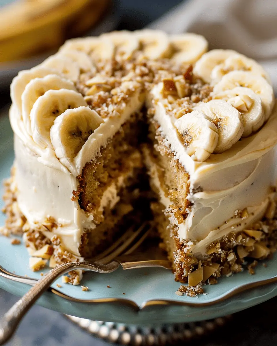 • Layer It Up: Consider making a tiered cake by stacking multiple layers of banana cake. This adds height and drama to your dessert table.