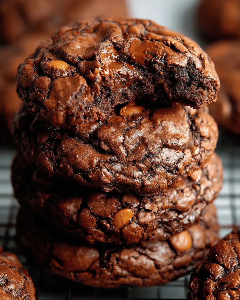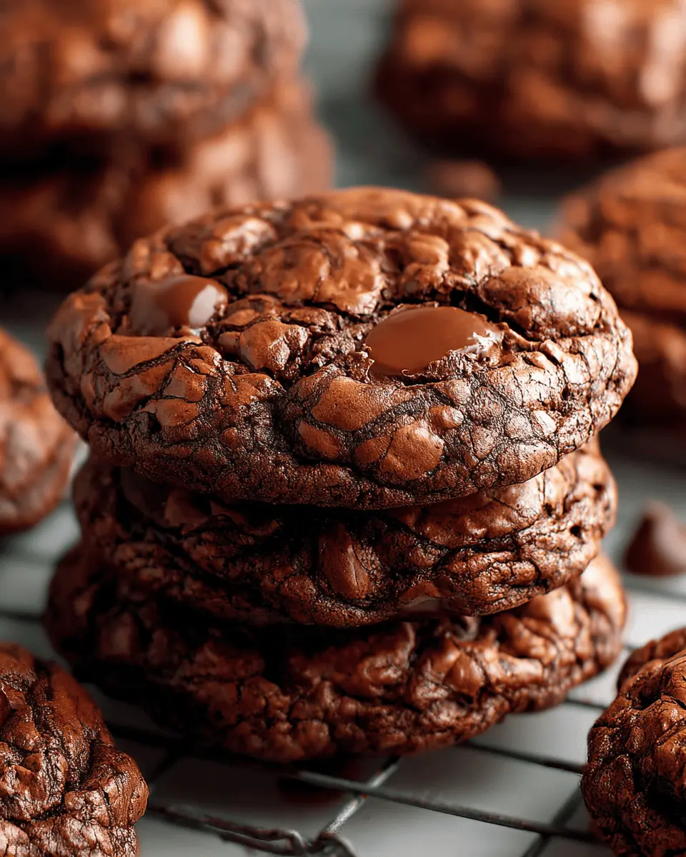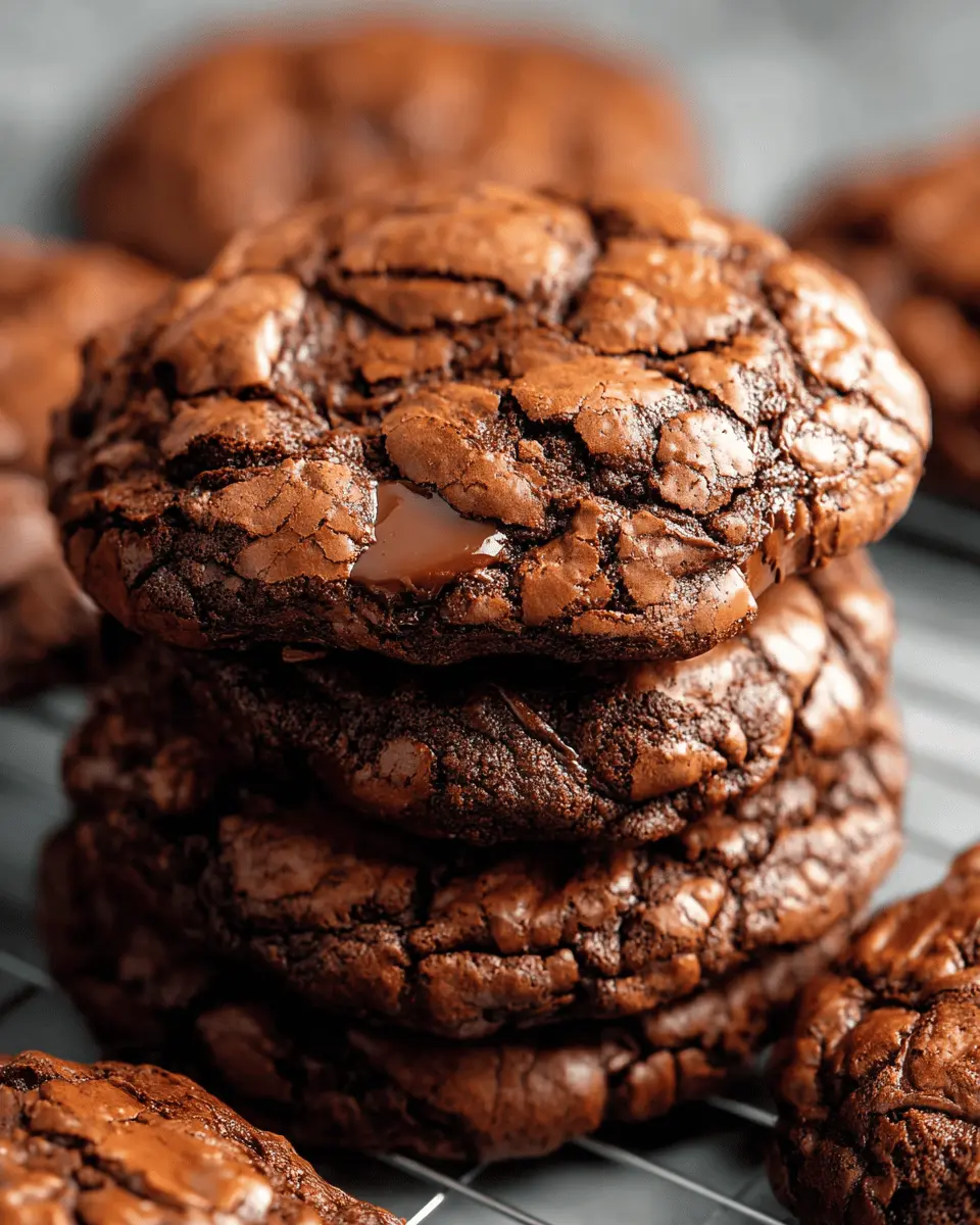 Once they’re baked, let the cookies cool on the baking sheets for a few minutes before transferring them to a wire rack to cool completely. This helps maintain their soft, fudgy center while the outside remains delightfully chewy.