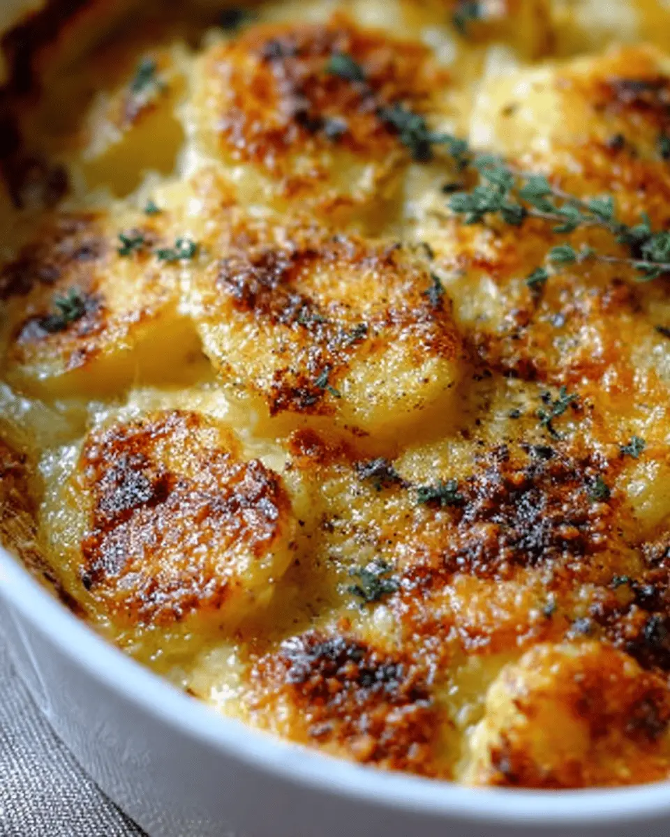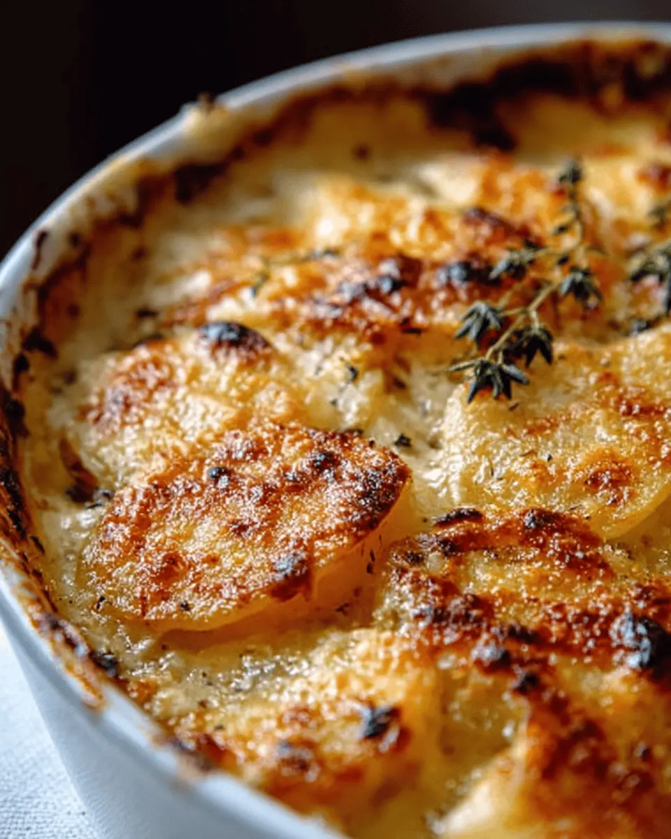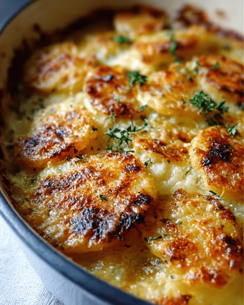 A rich and creamy potato gratin that’s perfectly crunchy on the outside and bubbly on the inside, featuring the delightful flavors of Parmesan and Gruyere cheese.