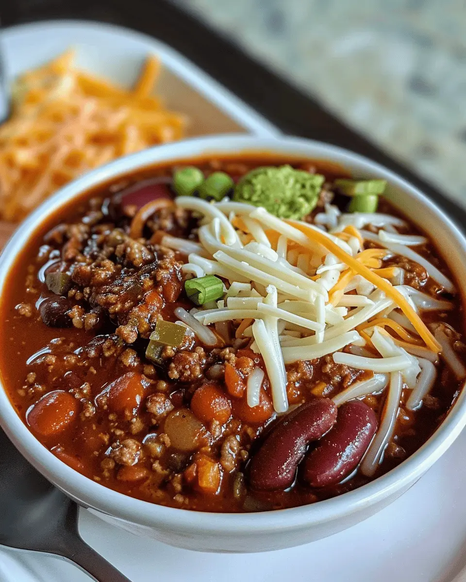 - Avocado Slices: Creamy and rich, avocado complements the chili beautifully.
