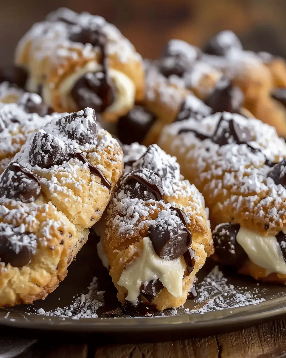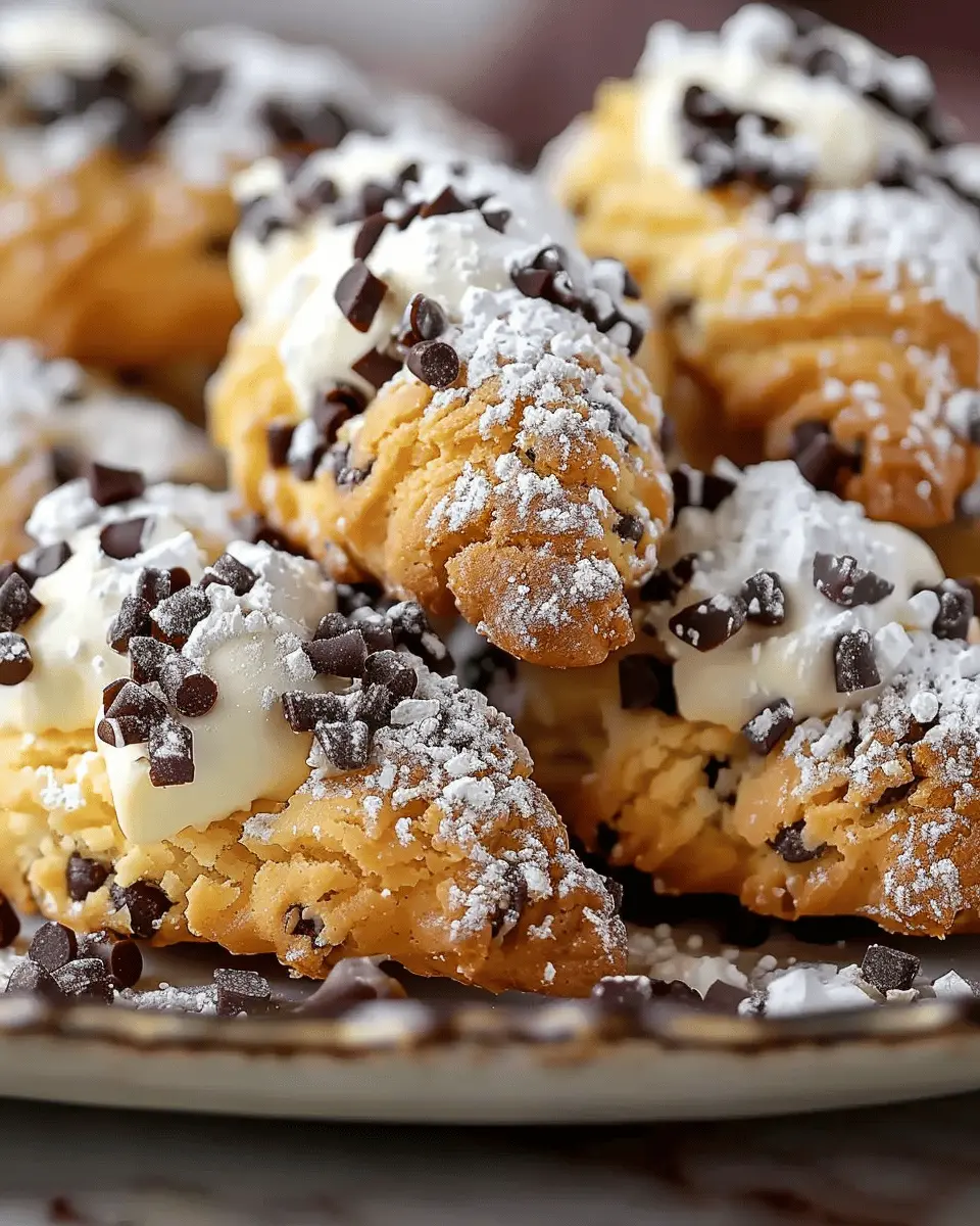 Why not put a delightful twist on traditional cannoli cookies by adding chocolate chips? This variation combines the creamy filling and crunchy shell with gooey chocolate for a treat that’s hard to resist.