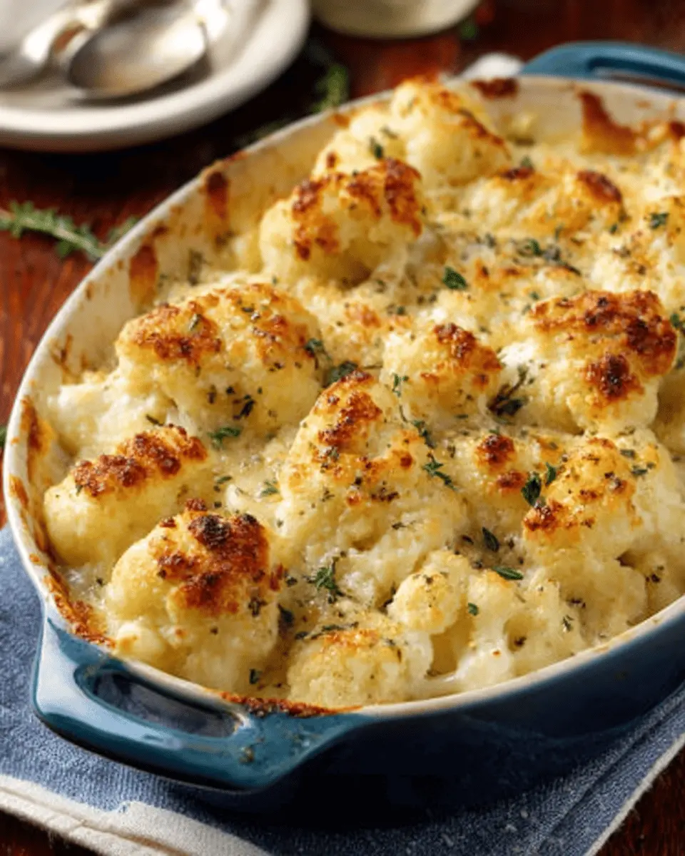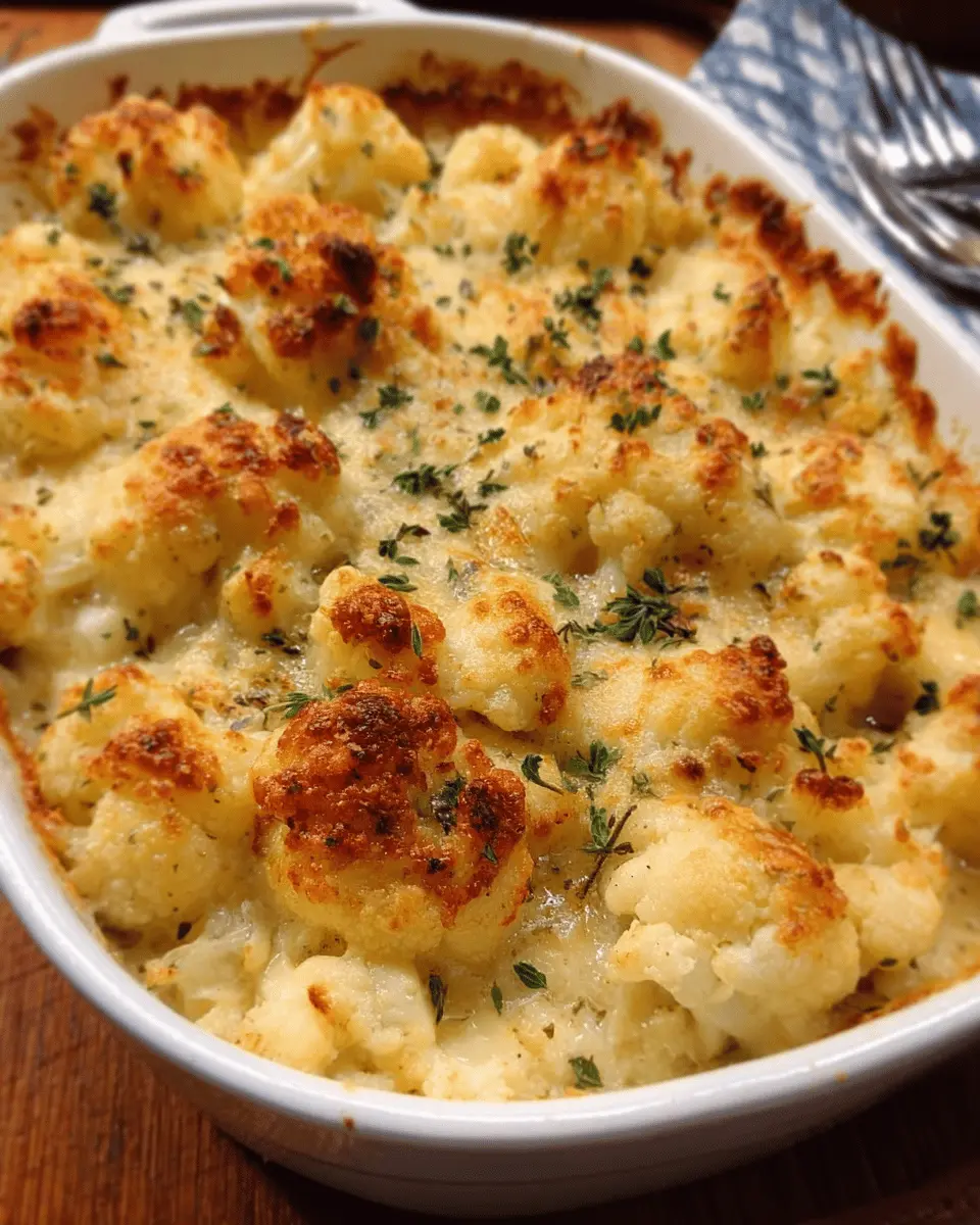 PrintCauliflower au Gratin: A Creamy Indulgence with Turkey Bacon