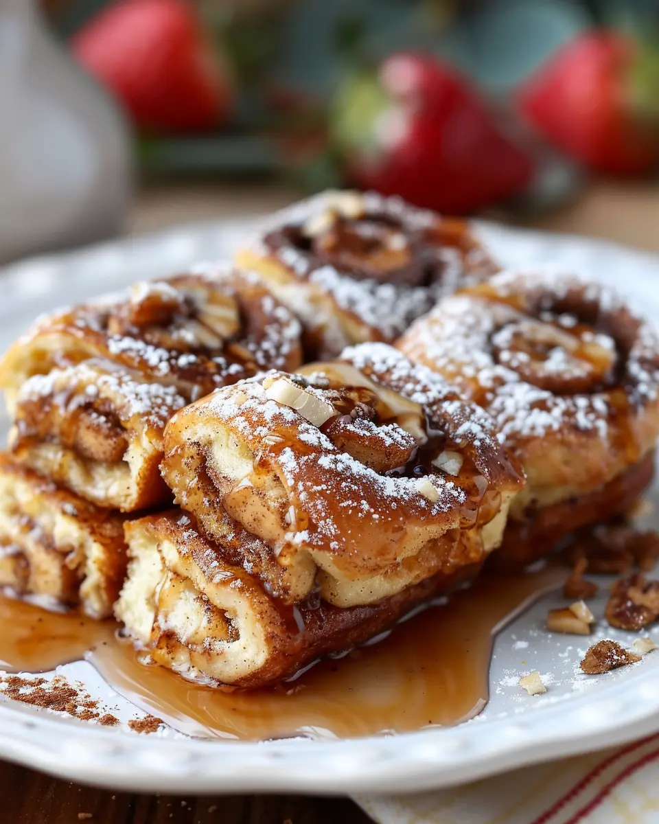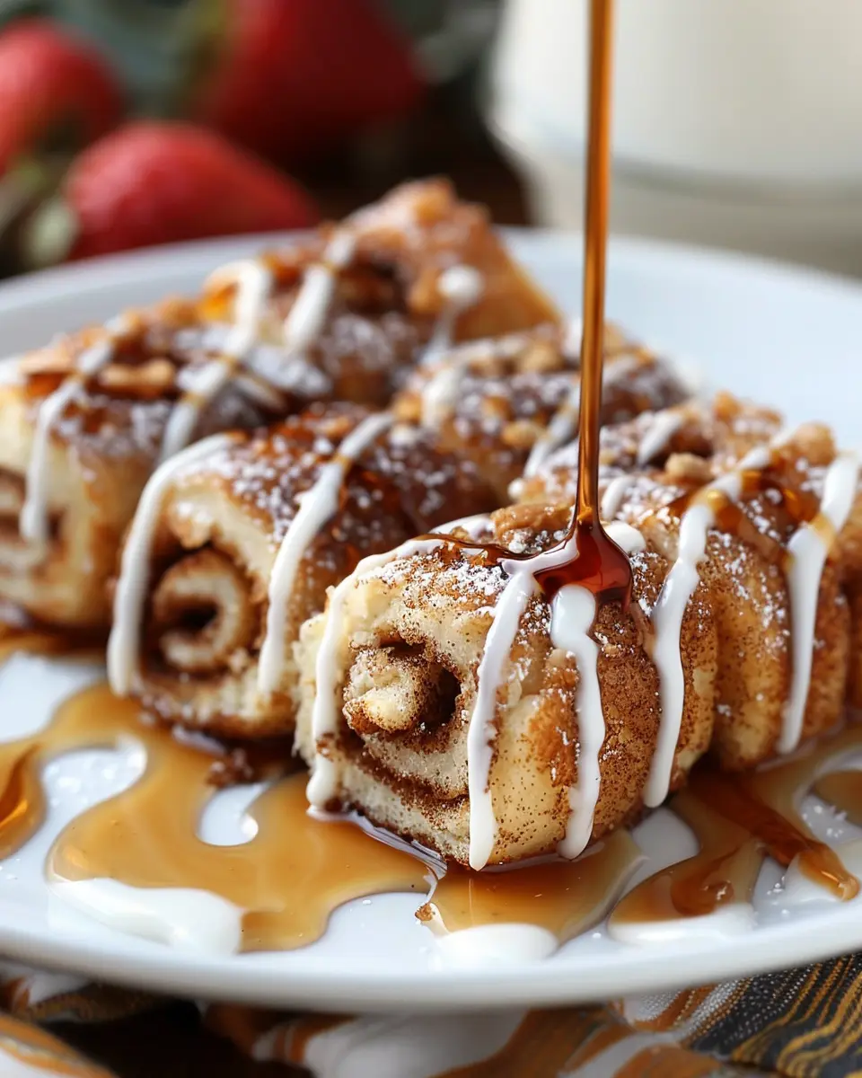 An easy and indulgent breakfast recipe that combines the flavors of cinnamon rolls with French toast.