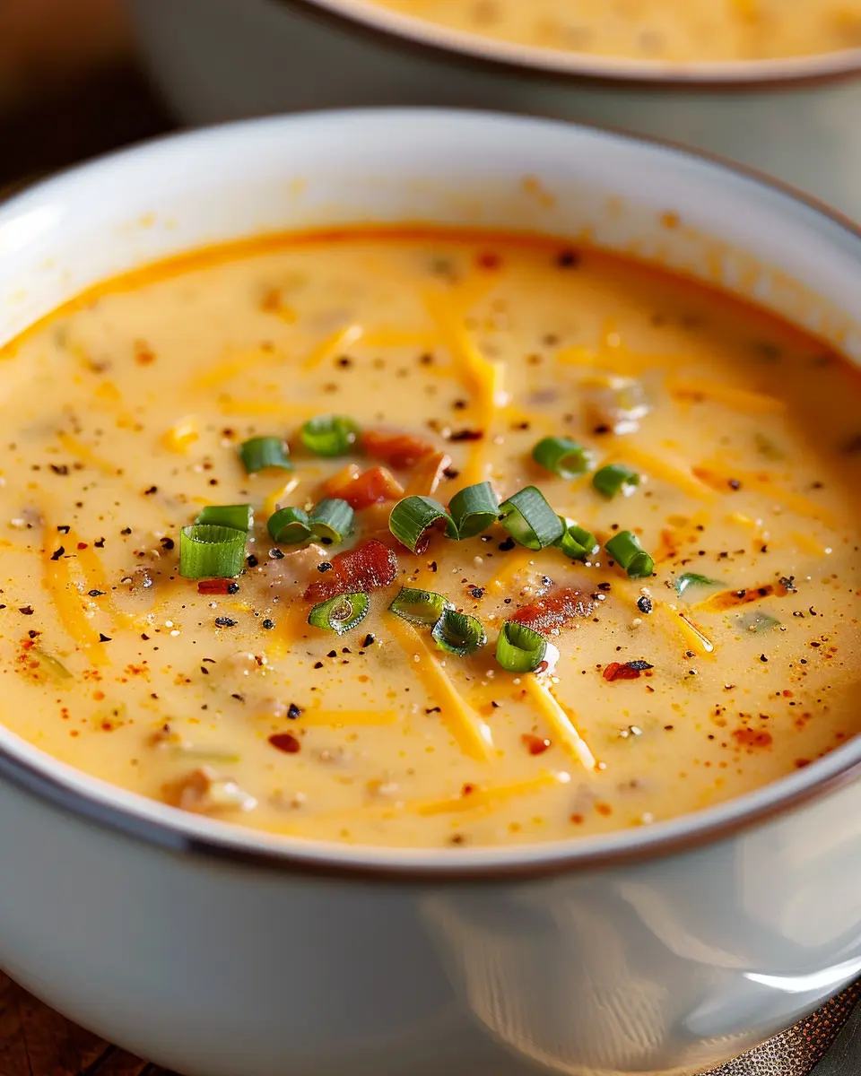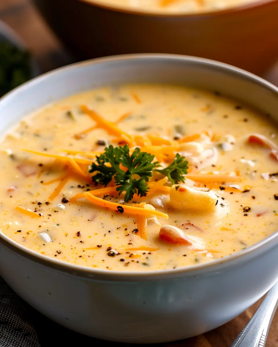 Tip: To prevent clumping, add the cheese in small handfuls, ensuring it melts smoothly into the soup.
