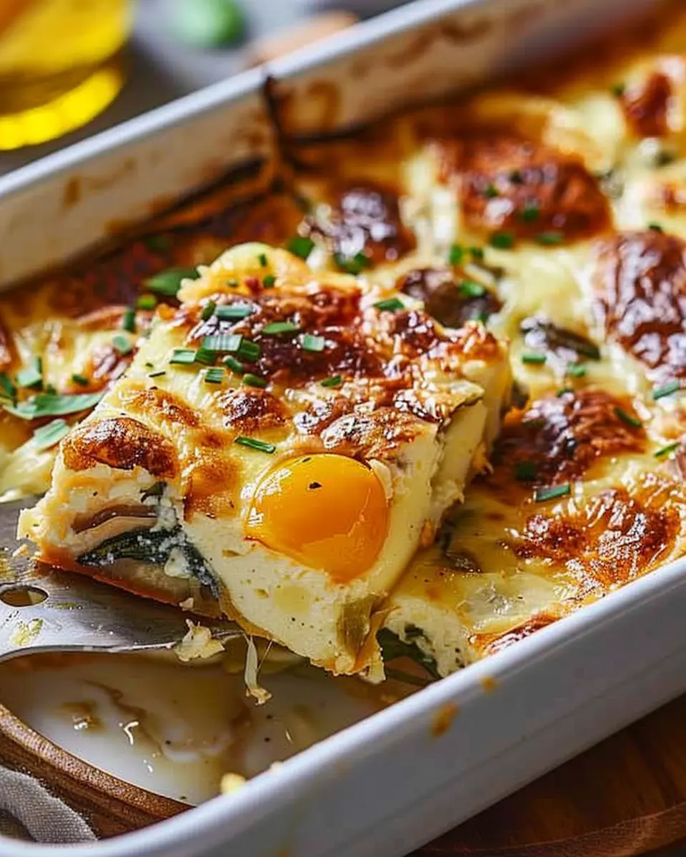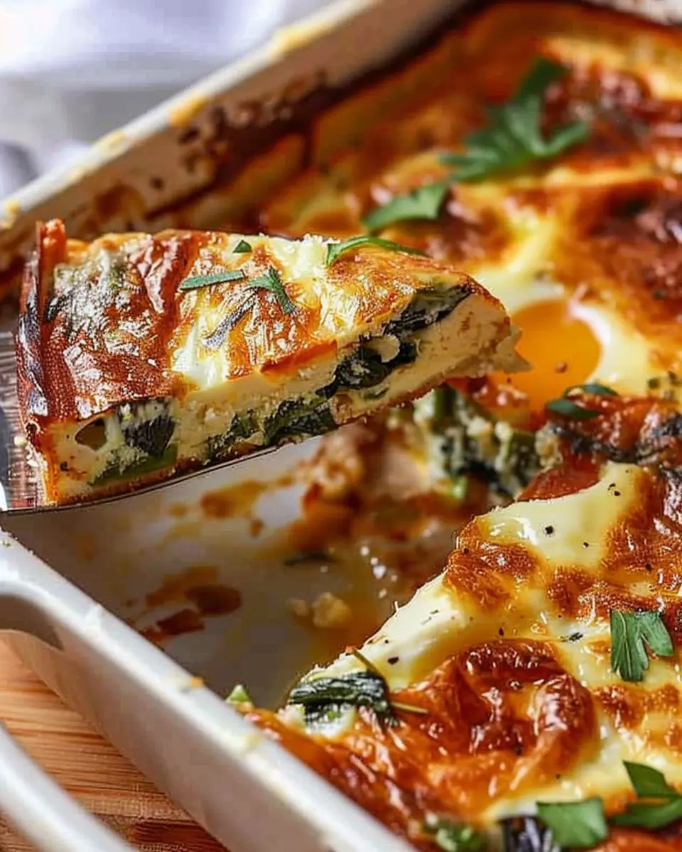 - Bake for 30-35 minutes or until the eggs are set and the top is lightly golden.