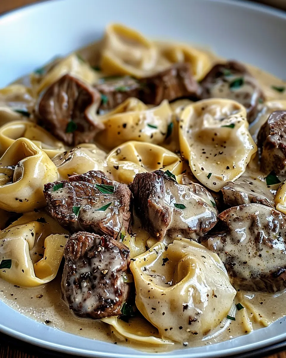 PrintCracked Garlic Steak Tortellini in Creamhouse Sauce Bliss: The Best Comfort Dish