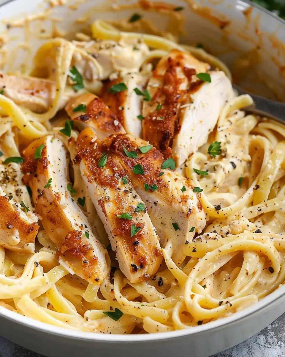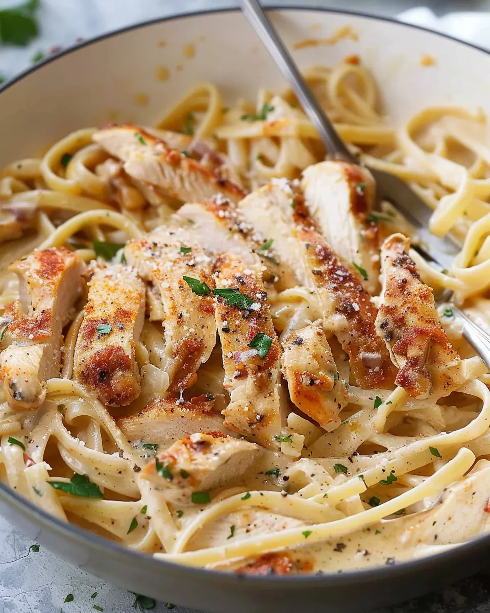 A delicious and creamy pasta dish infused with Cajun spices, featuring tender chicken and a blend of flavors that bring warmth and comfort.