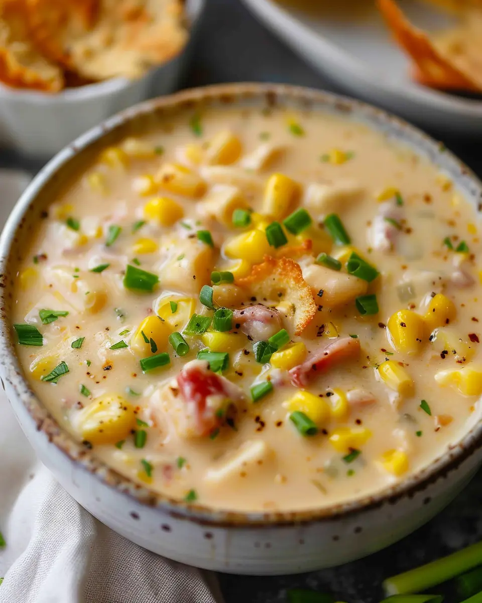 Creamy corn chowder is a delightful, hearty soup that’s perfect for cozy nights or a quick weekday dinner. Originating from North America, this dish combines fresh corn kernels with a luscious, creamy base to create a satisfying and filling meal. Typically enriched with ingredients like potatoes, onions, and sometimes protein like turkey bacon or chicken ham, this chowder offers a wonderful blend of flavors and textures.