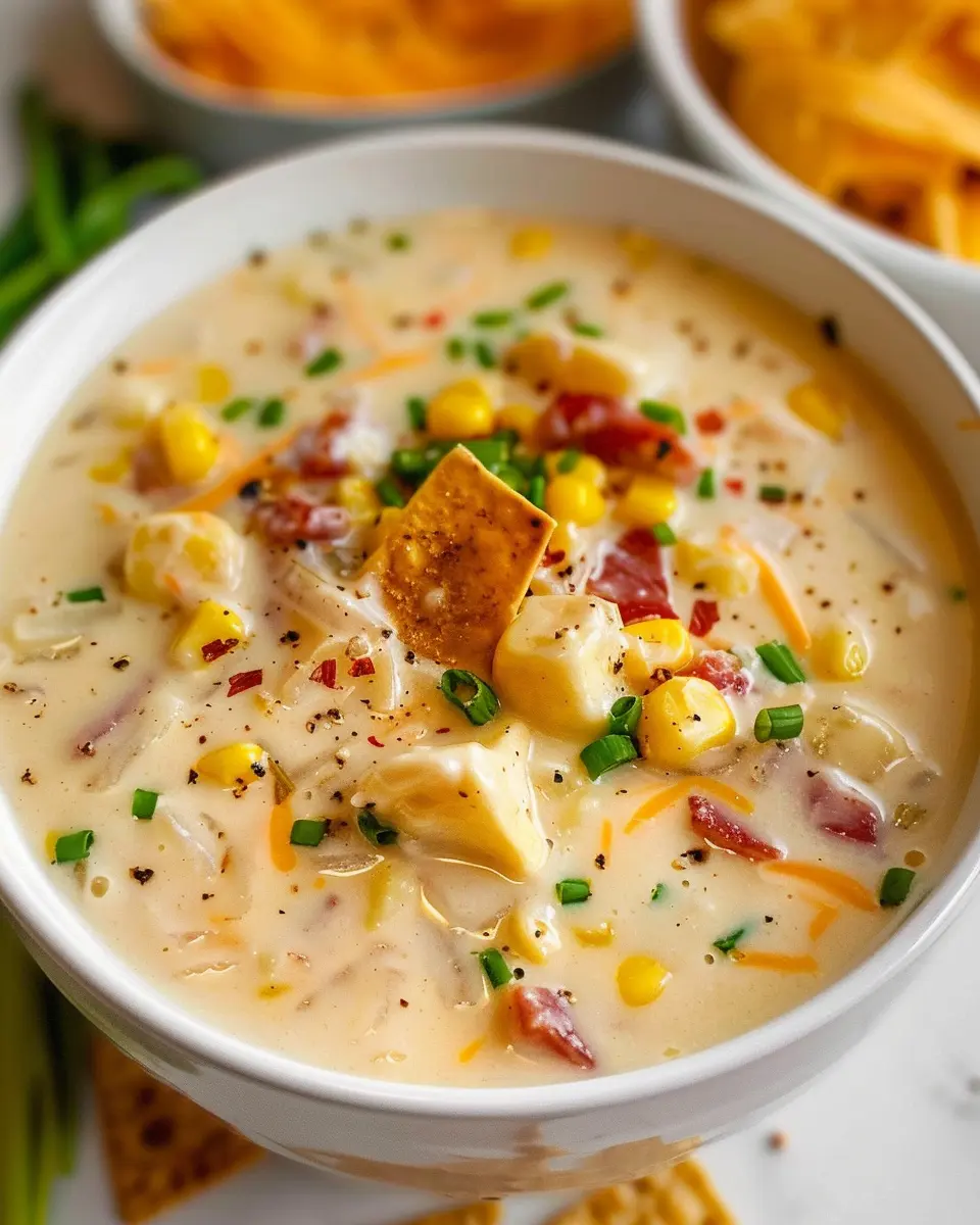 Now, let’s elevate that creamy corn chowder with garnishes! A sprinkle of fresh herbs, like cilantro or chives, can brighten up the dish. Crumbled turkey bacon adds a delicious crunch, while a dollop of sour cream or Greek yogurt gives it a creamy finish.