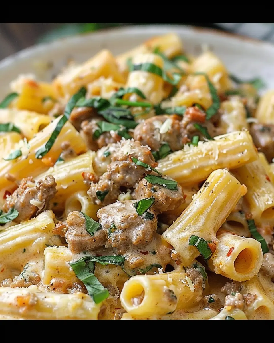 To wow your guests, focus on the presentation. Serve your creamy Italian sausage rigatoni in a large, shallow dish and garnish with fresh basil leaves and a sprinkle of grated Parmesan cheese. Plating with a bit of elegance can elevate even the simplest meals.