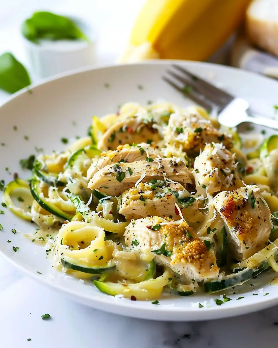 A creamy and delicious twist on traditional chicken alfredo, featuring fresh zucchini for a lighter meal.