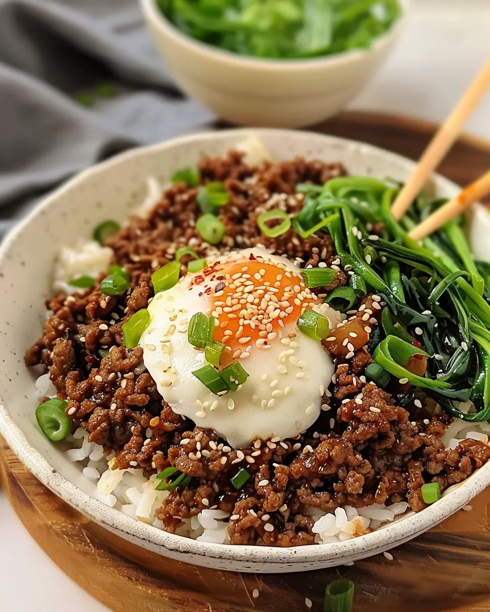 A quick and easy recipe for a flavorful Korean ground beef bowl that’s perfect for weeknight dinners.