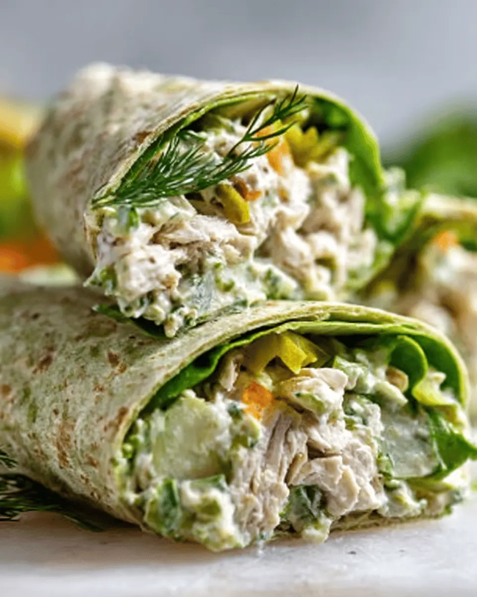 Dill Pickle Chicken Salad Wraps – Cool, Tangy, and Ready in 10 Minutes