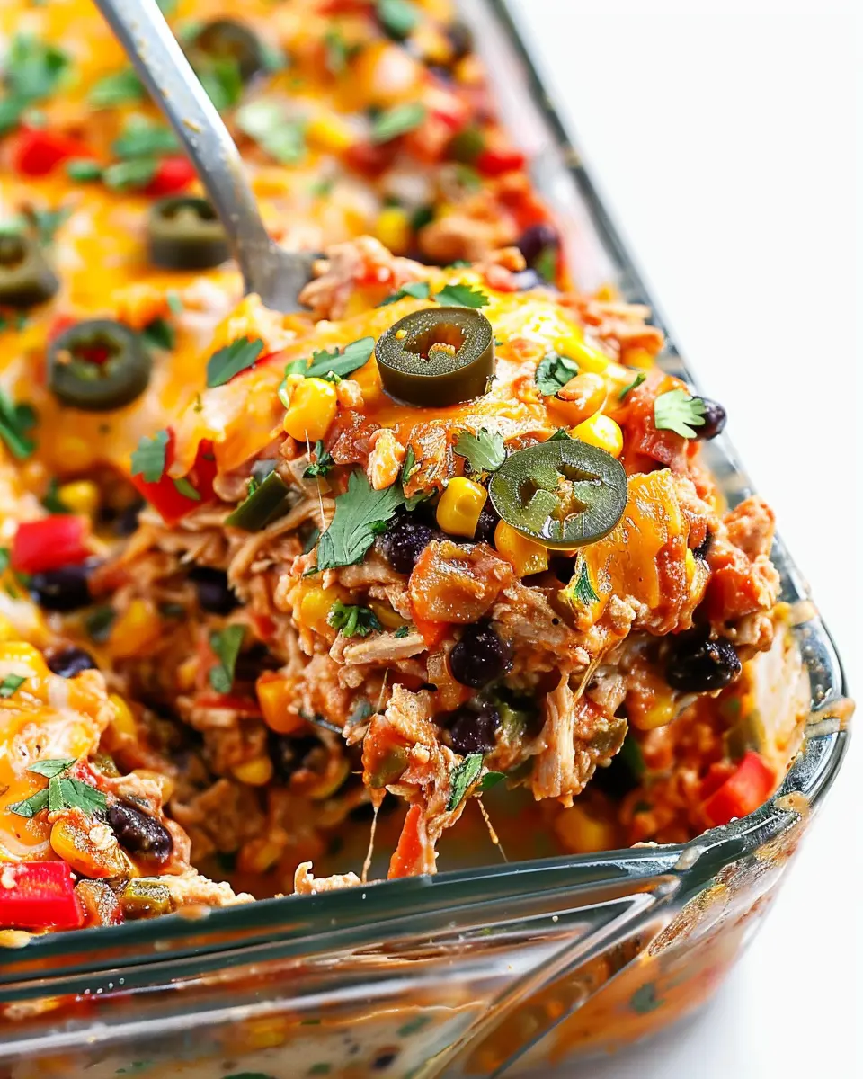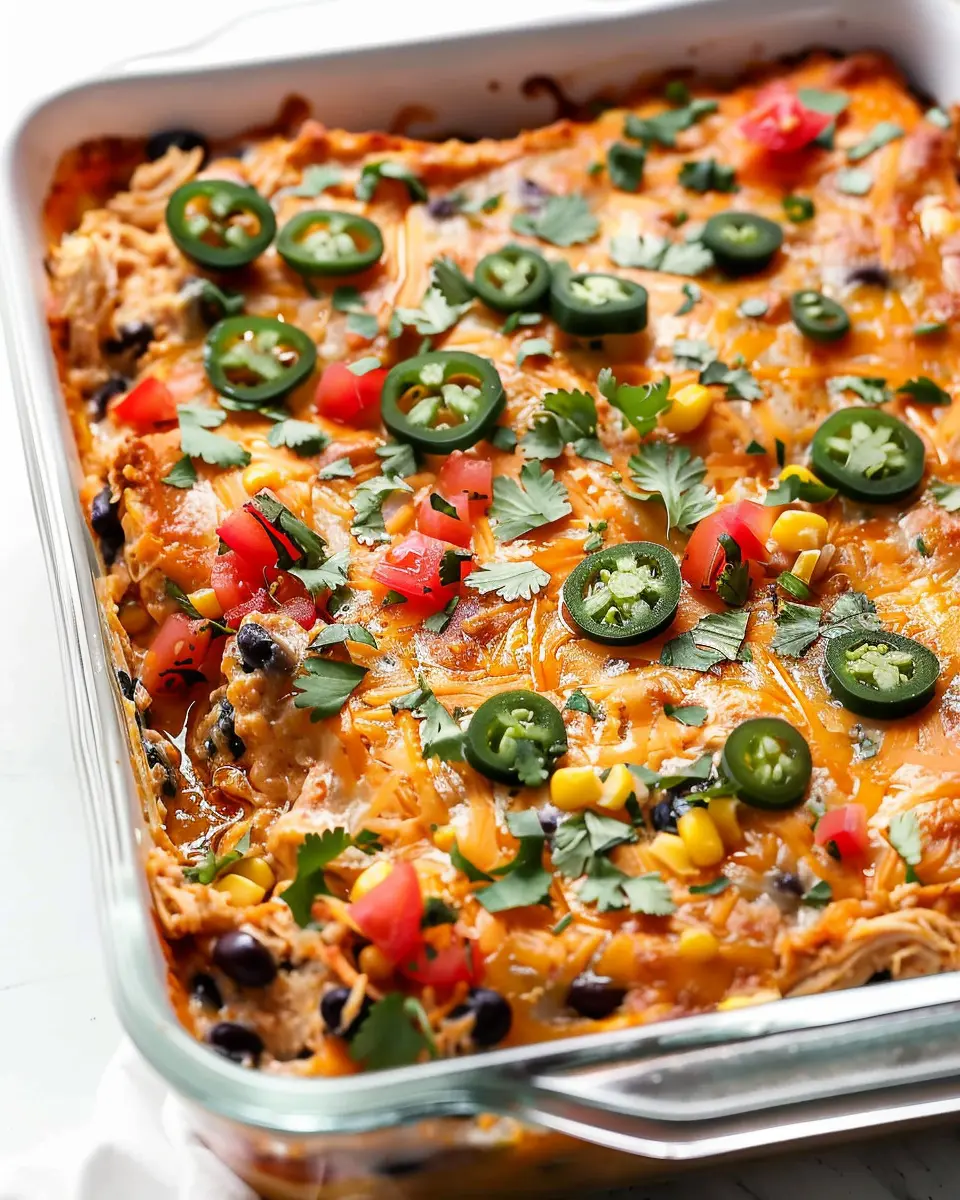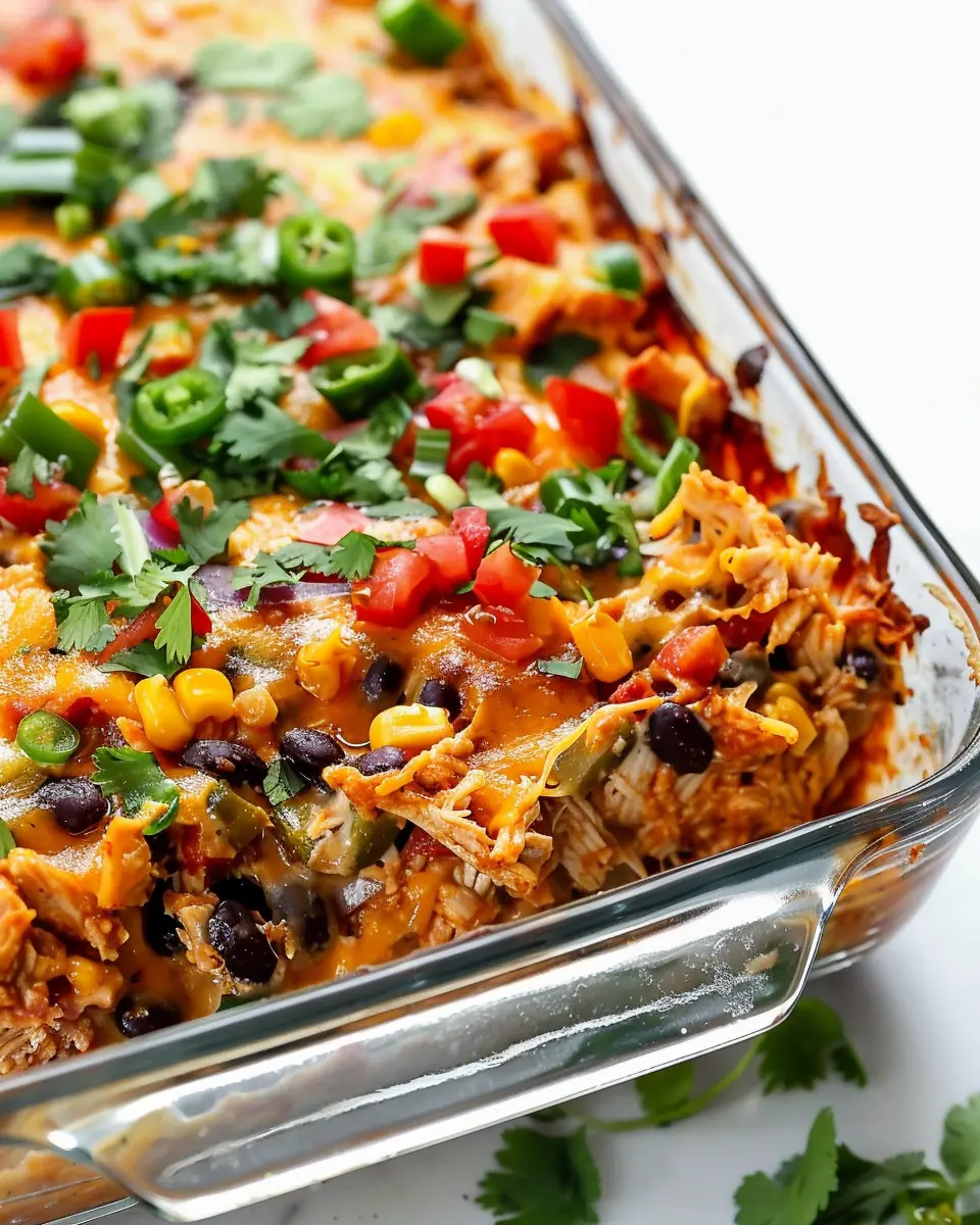 A delicious, easy-to-make chicken burrito casserole perfect for family dinners.