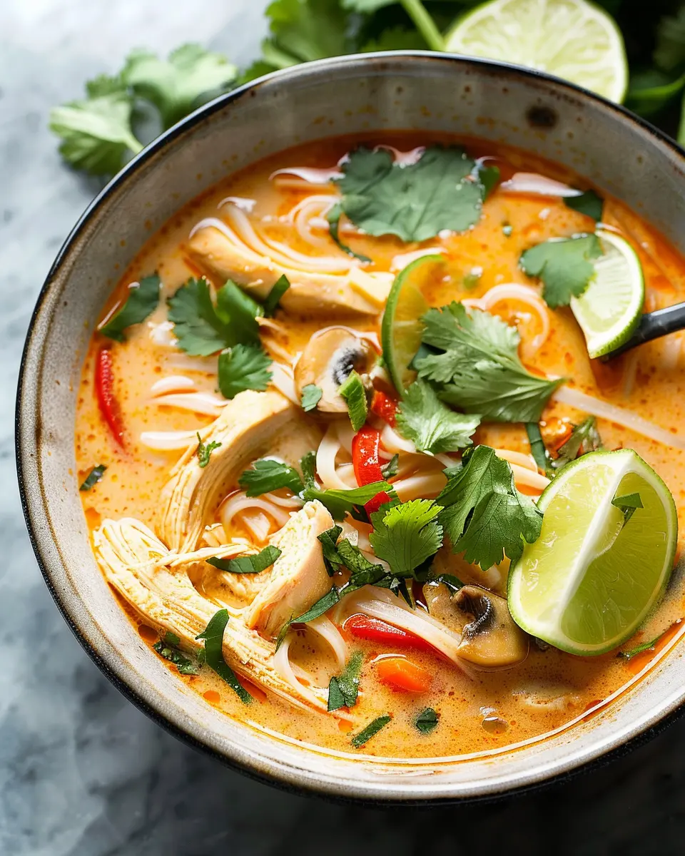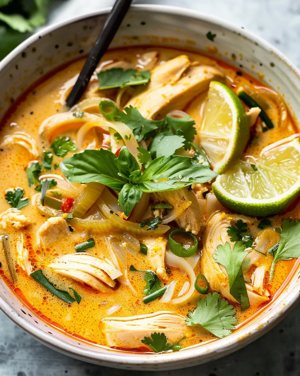 Experience the warmth of Easy Thai Chicken Curry Soup, a delightful blend of spices, chicken, and coconut milk that brings comfort in every spoonful.