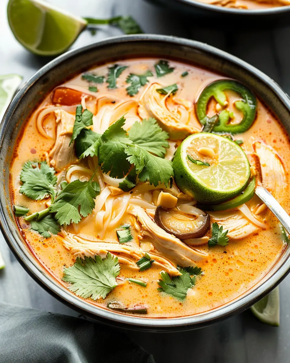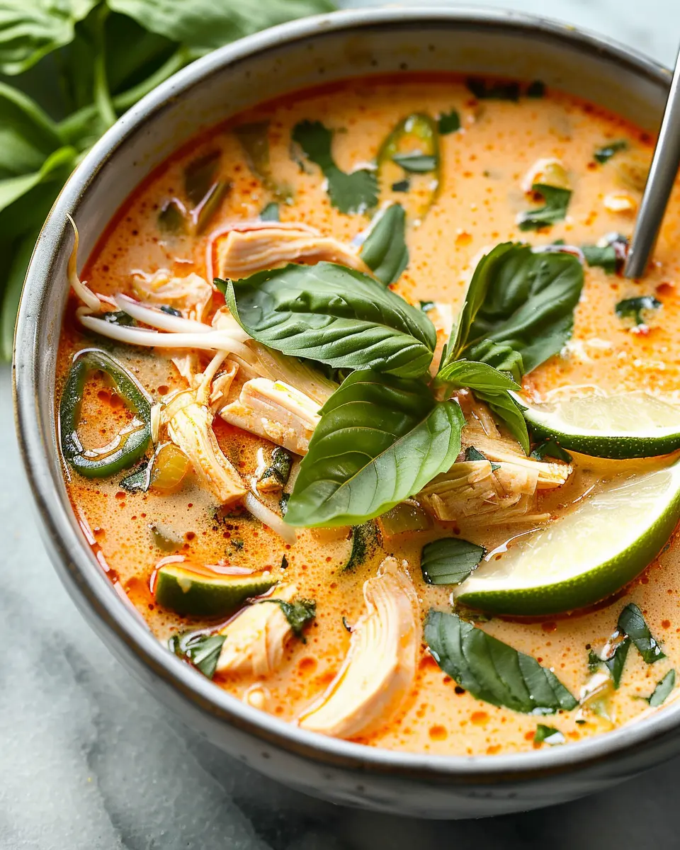 Who says you need meat to enjoy the rich flavors of this soup? For a vegetarian take, simply replace the chicken with a mix of hearty vegetables like bell peppers, mushrooms, and sweet potatoes. Add some cubed tofu or chickpeas for protein. Use vegetable broth instead of chicken broth and keep the original spice blend. The aroma of coconut milk mixed with fresh lime and Thai basil will still make your kitchen smell divine!