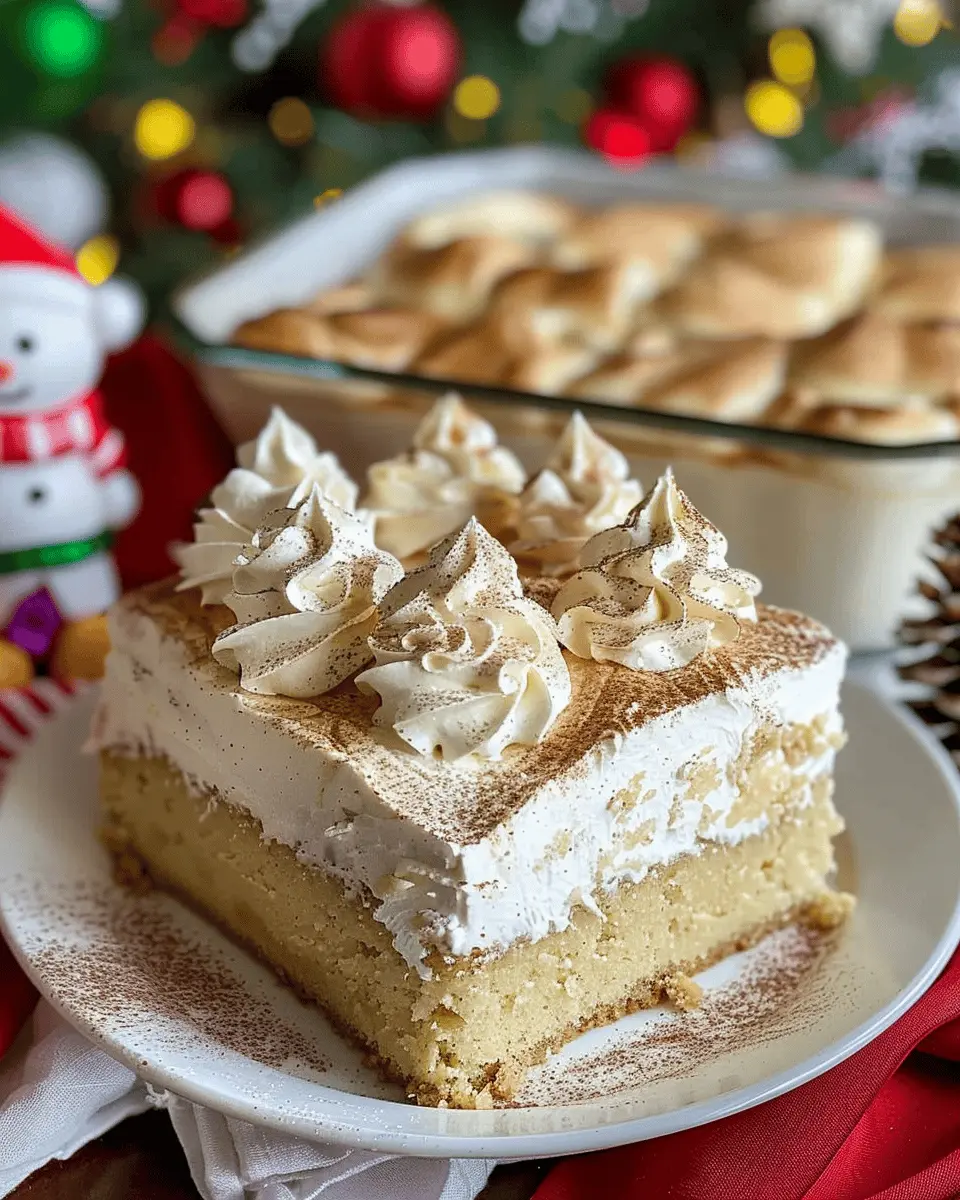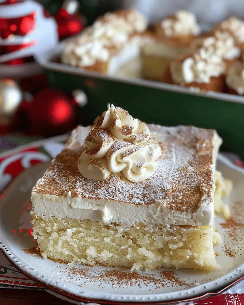 Indulge in the festive flavors of Eggnog Poke Cake, a delightful holiday dessert that brings joy to every celebration.