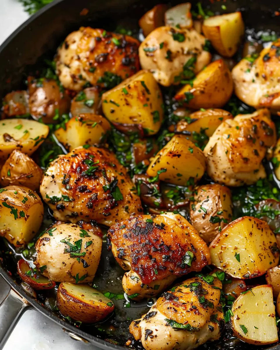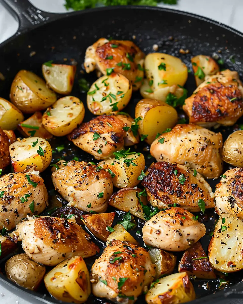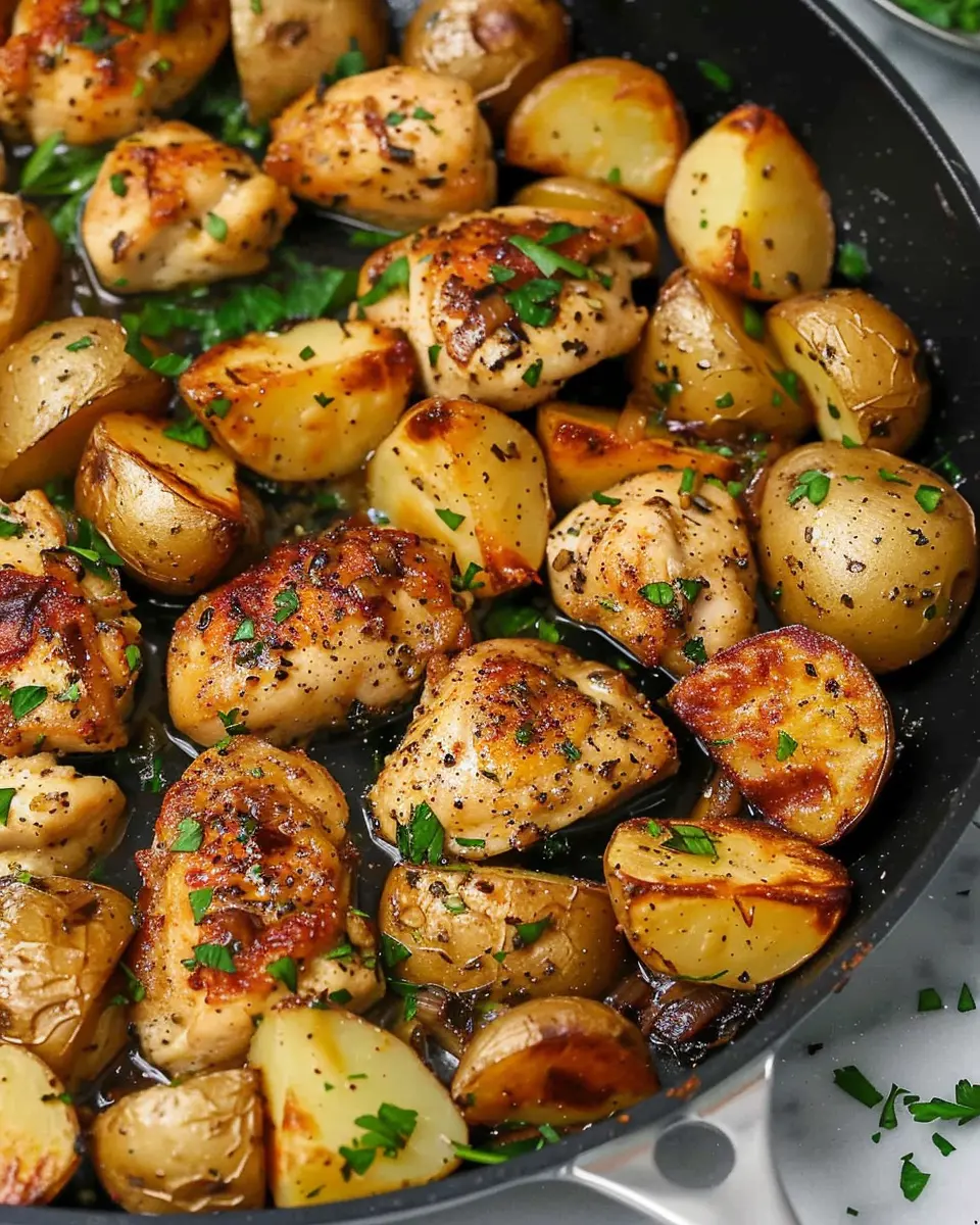 A delicious and easy recipe for Garlic Butter Chicken and Potato Skillet that brings together tender chicken and flavorful potatoes, all cooked in rich garlic butter.
