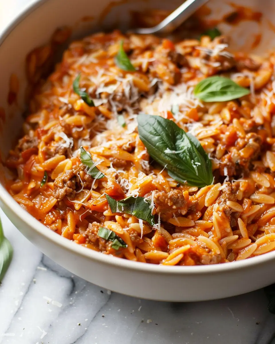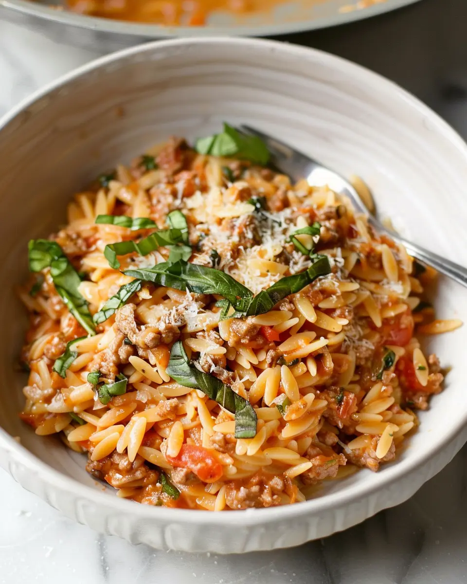 • Nutritious Ingredients: With a balance of protein from ground beef and carbs from orzo, this dish checks all the nutritional boxes. Plus, the addition of a rich tomato cream sauce adds an abundance of flavor that’s hard to resist.