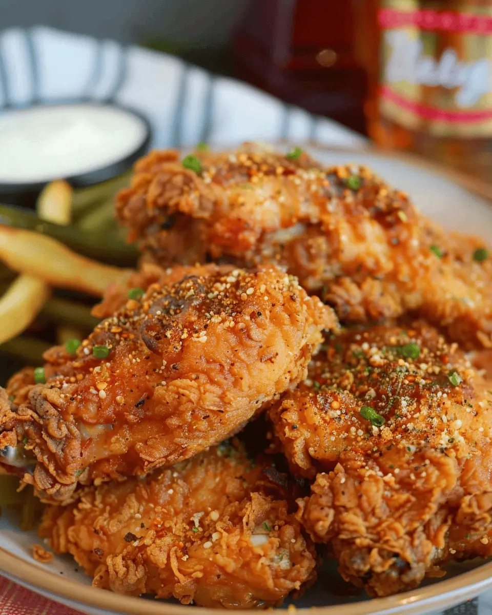 Now onto the fun part: seasoning the chicken! In a large bowl, combine your spices with the buttermilk and soak the chicken pieces. Let it mingle in the refrigerator for at least an hour (or overnight if you can wait!). This step not only marinates the chicken but also adds depth to the flavor.
