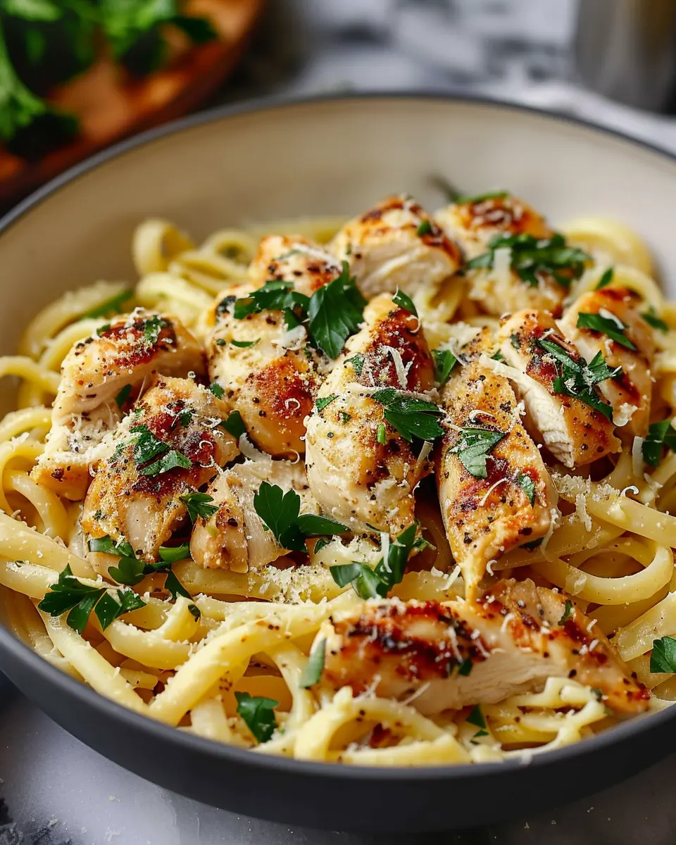 Presentation matters! Try twirling the healthy garlic parmesan chicken pasta into a nest shape for a refined look. Garnish with a sprinkle of extra parmesan and a few parsley leaves to catch the eye. Alternatively, use a large, shallow bowl to serve, allowing for a more rustic charm. A drizzle of balsamic reduction on the rim adds an artistic flair that’s sure to impress your dinner guests.