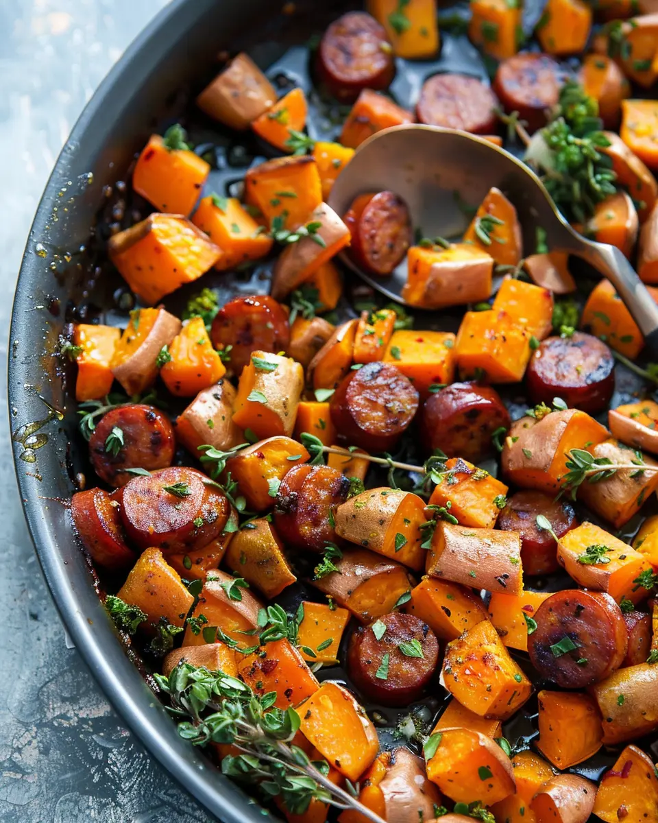 Definitely! While honey garlic sausage adds a sweet and savory flavor that perfectly complements sweet potatoes, feel free to experiment with other types. Whether it’s chicken sausage for a leaner option or turkey bacon for a touch of smokiness, your dish will adapt beautifully. Just adjust cooking times as needed to ensure everything is cooked properly.