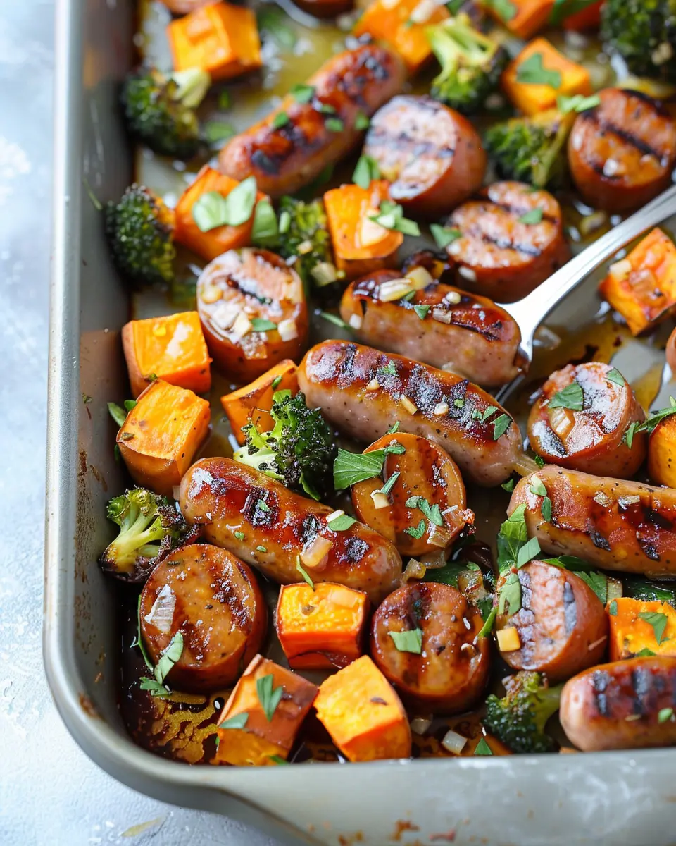 As someone who enjoys cooking, I find that this dish not only saves time but also brings everyone together, whether it’s a cozy dinner for one or a gathering with friends. So, are you ready to dive into this simple, yet satisfying recipe? Let’s get those sweet potatoes and sausages cooking! You’ll find the full recipe below; it’s just the thing you need to simplify your meal prep while still enjoying every last bite.