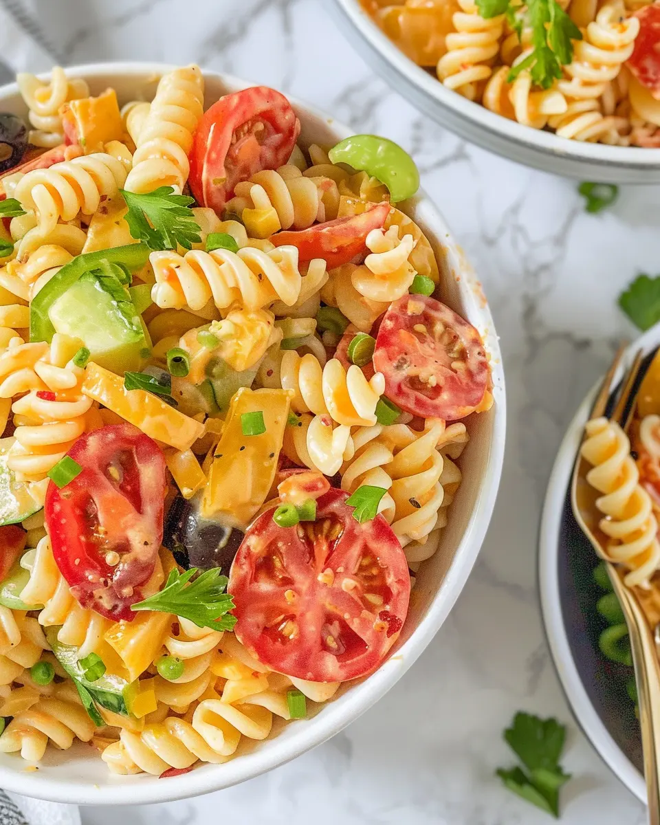 As you can see, preparing this vibrant pasta salad is straightforward and rewarding. Perfect for meal prep or entertaining, it’s sure to become a go-to favorite in your culinary repertoire. Feel free to explore more delicious salad recipes here. Enjoy!