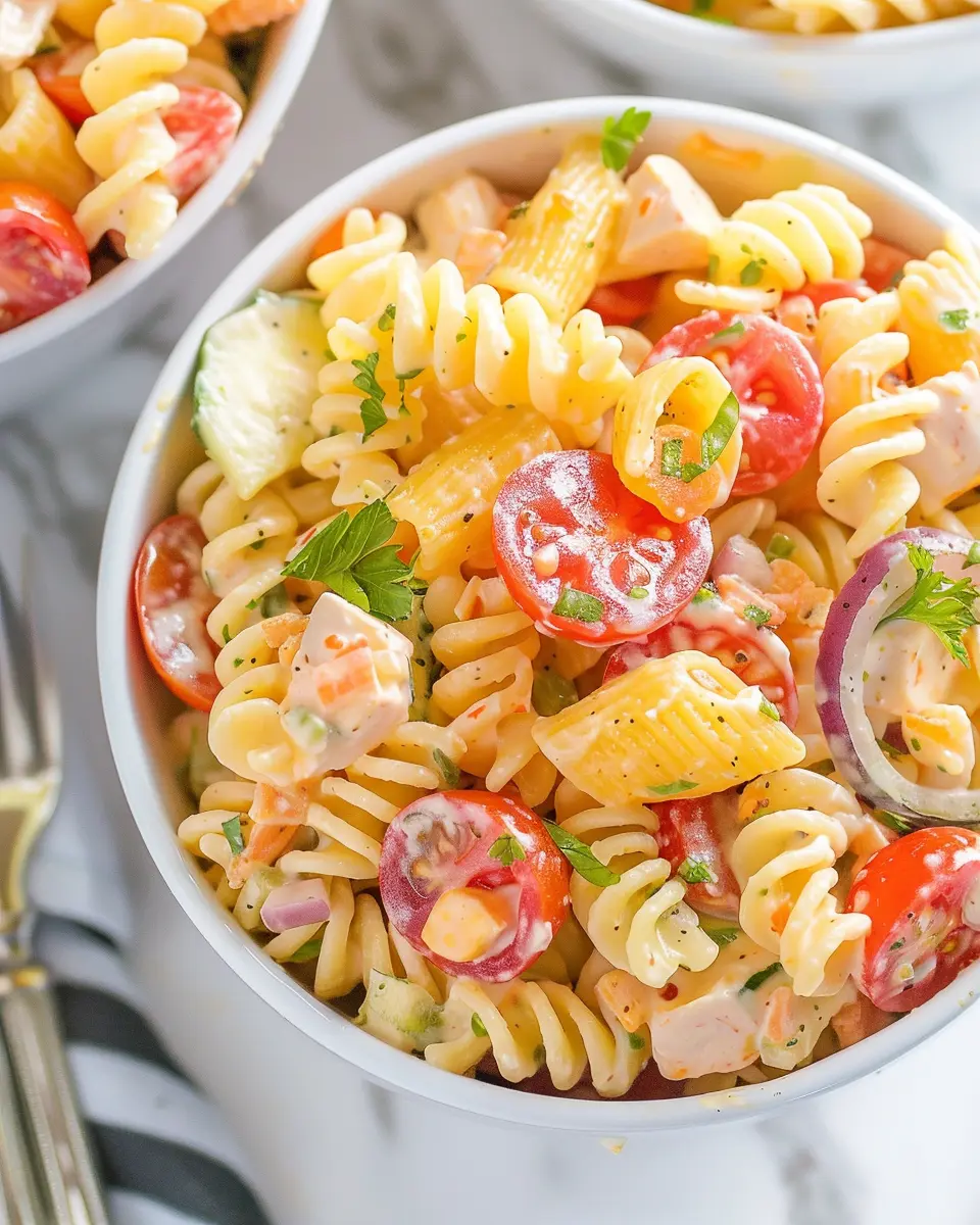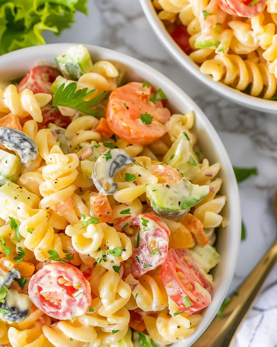 - Use big, clear bowls to showcase the vibrant colors of the pasta salad; it’s as much about the presentation as it is about taste!