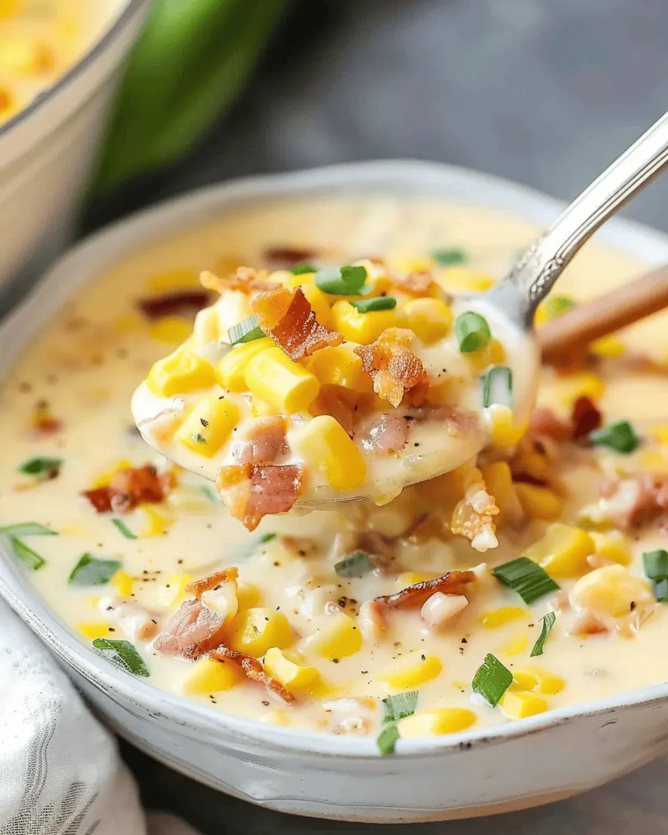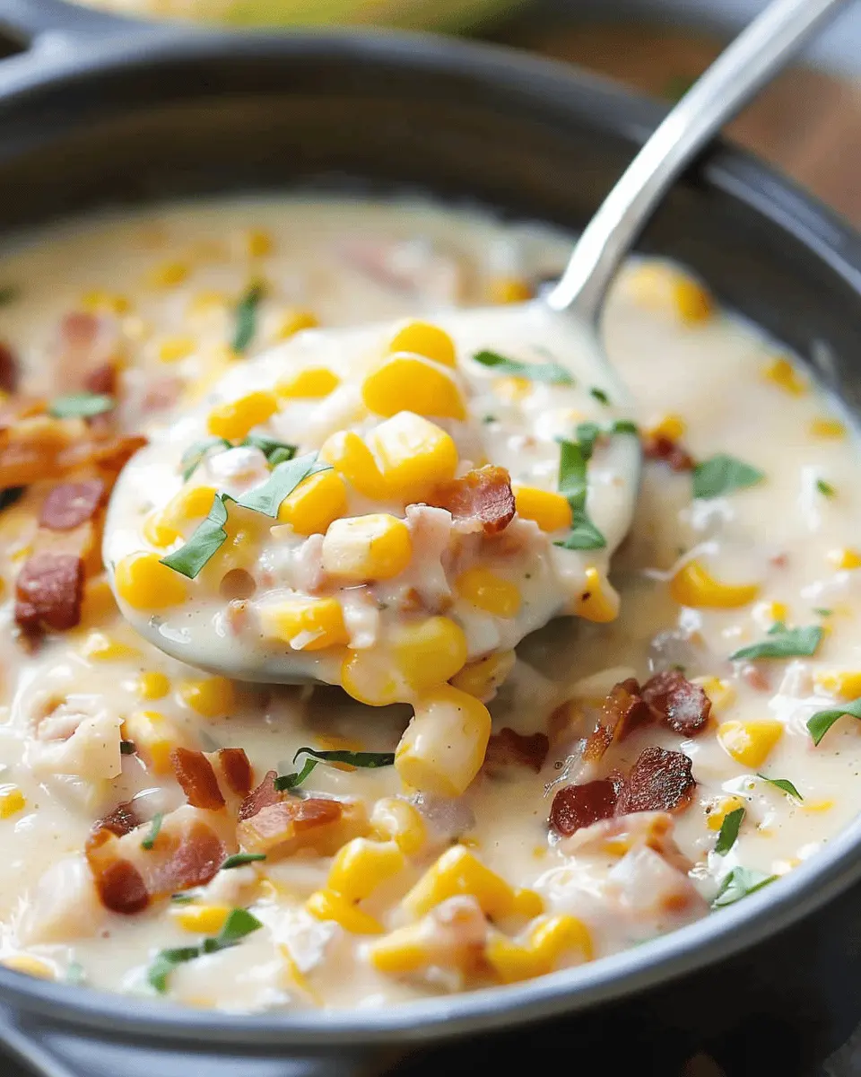 Health-Conscious Ingredients: By utilizing fresh corn and opting for leaner meats like Turkey Bacon, this chowder can fit nicely into a balanced diet. The inclusion of cream cheese adds a rich texture without overwhelming calories, making it a guilt-free indulgence.