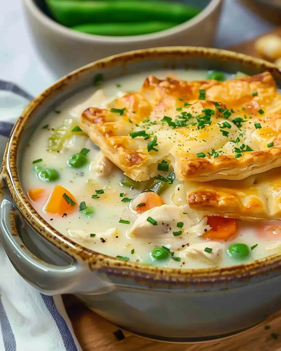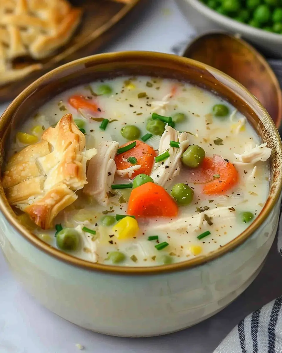 Don’t hesitate to make this chicken pot pie soup your own. Maybe add some extra spices or toss in your favorite vegetables for a personal twist. Experiment with different types of protein, like chicken ham or turkey bacon, to up the flavor profile! Your kitchen, your rules! So why not give it a try and enjoy the cozy vibes this soup brings?