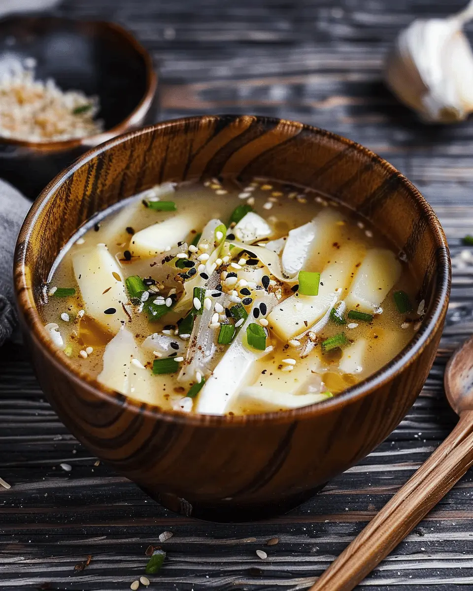 - Ladle the soup into bowls and sprinkle with scallions or sesame seeds for added texture and flavor.