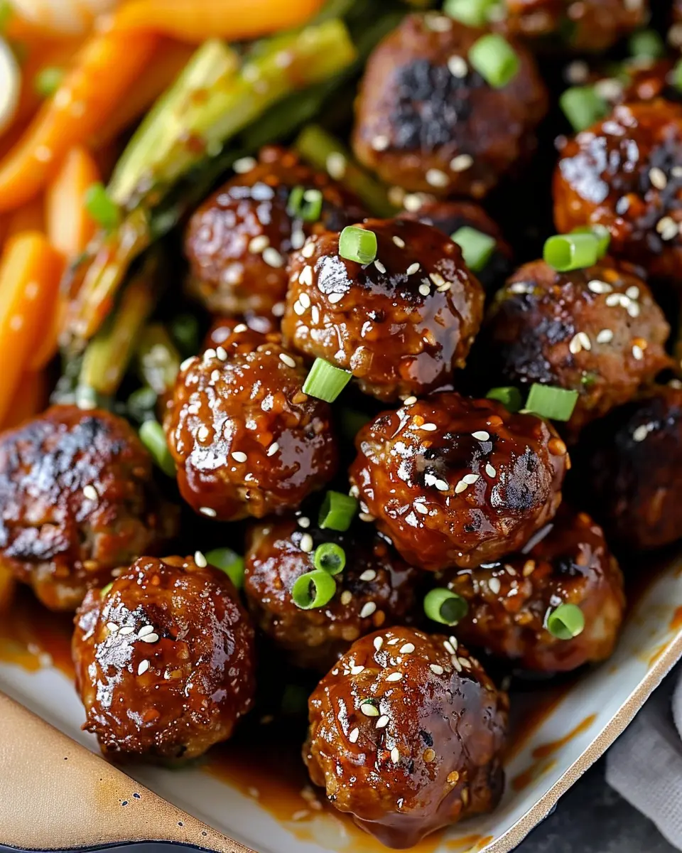 PrintKorean BBQ Meatballs: Juicy Turkey Bacon & Chicken Ham Twist