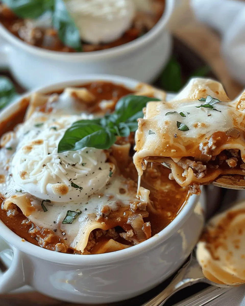 PrintLasagna Soup Recipe: Easy Comfort Dish with Turkey Bacon and Chicken Ham