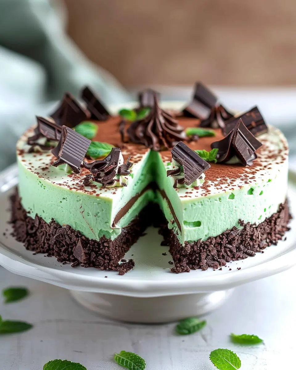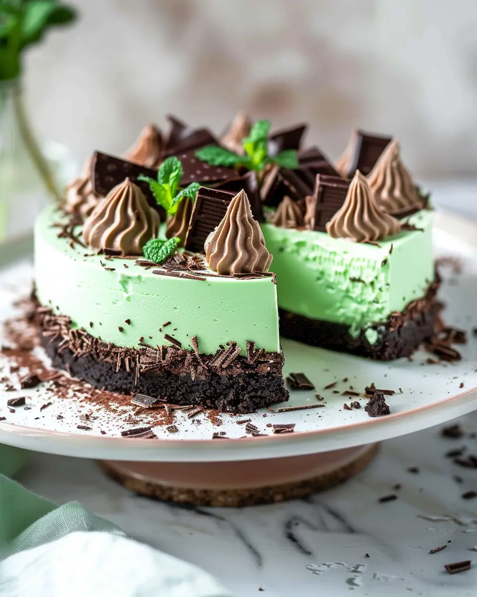 A delicious and indulgent mint chocolate cheesecake that’s perfect for chocolate lovers.