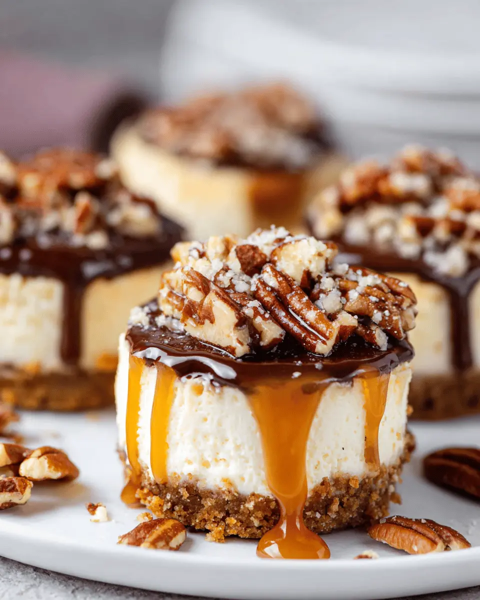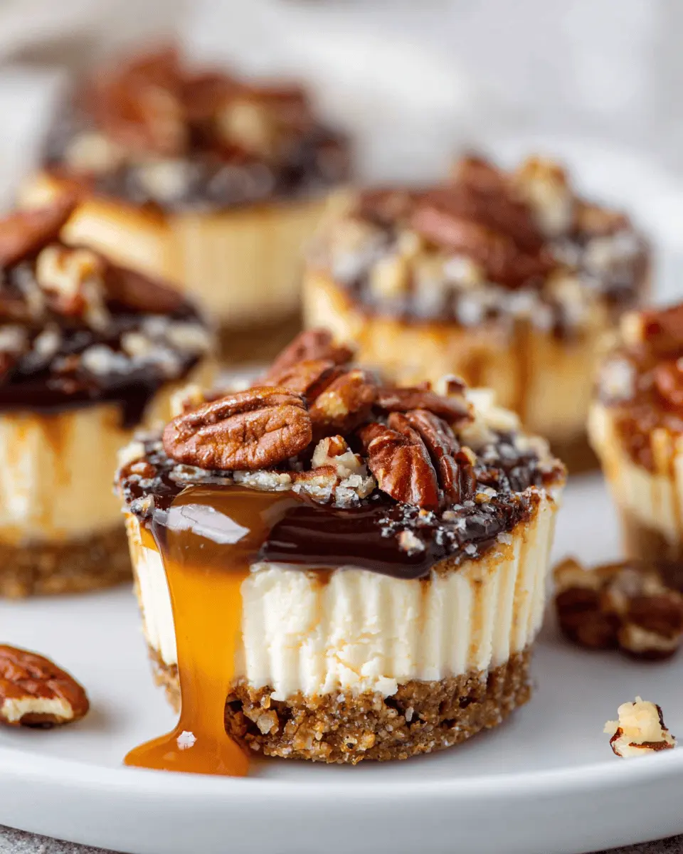 No-Bake Turtle Mini Cheesecakes are a delightful dessert that combine the rich flavors of chocolate, caramel, and pecans, perfect for satisfying your sweet tooth without any baking involved.