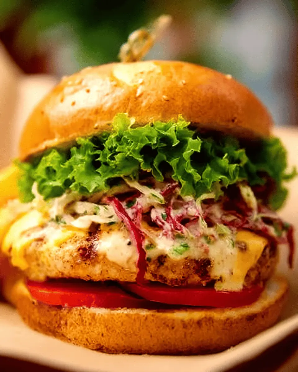With roughly 30 grams of protein per serving, this burger is a protein powerhouse. It’s perfect for those looking to keep their energy levels high, especially after a busy day. Incorporating lean chicken breast and Turkey Bacon boosts the protein while keeping it lean.