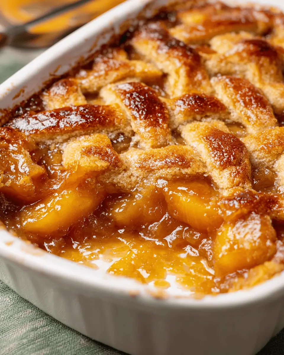 Experience the delightful flavors of this traditional peach cobbler recipe, reminiscent of cherished family gatherings and joyful memories.