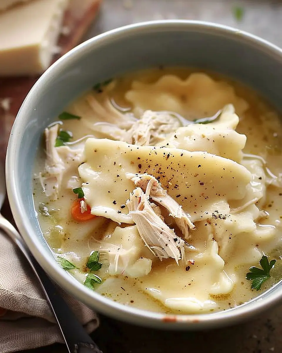 Enjoy a comforting bowl of Old-Fashioned Southern Chicken and Dumplings, a classic recipe that delivers rich flavors and tender dumplings.