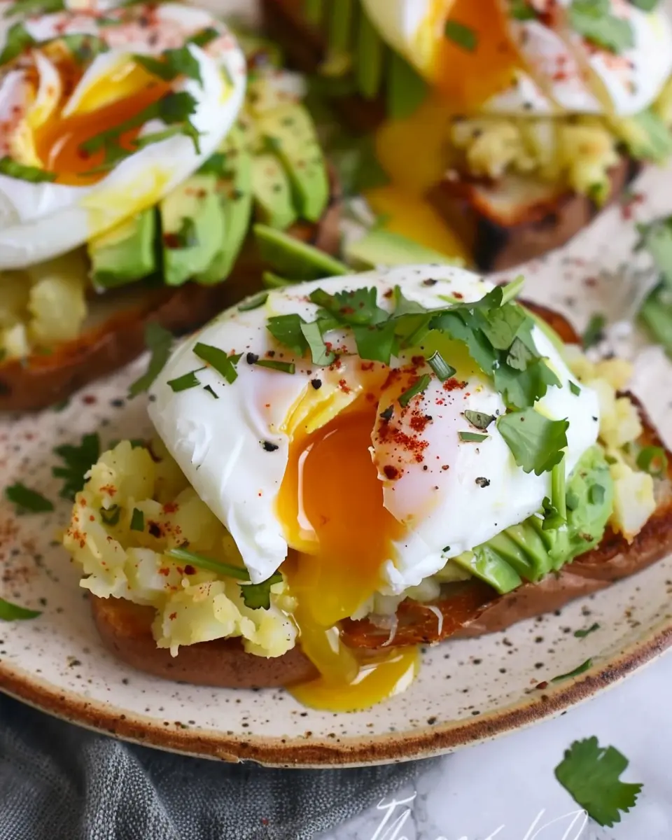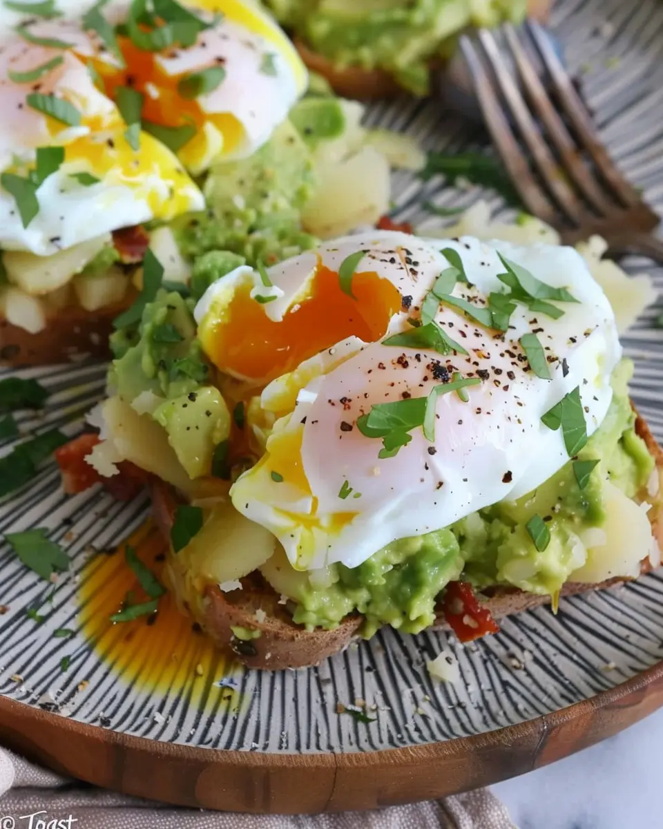 But there’s more! This dish is also incredibly versatile. You can customize it with different toppings, such as turkey bacon or chicken ham, adding extra protein and flavor. If you’re feeling adventurous, why not throw in some fresh herbs, spicy chili flakes, or even a drizzle of balsamic glaze? Each addition contributes to making your potato avocado toast a unique culinary delight tailored to your taste preferences.