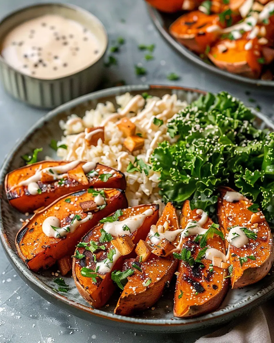 - Tahini Dressing: Creamy and nutty, this sauce pairs beautifully with the sweetness of the potatoes.
