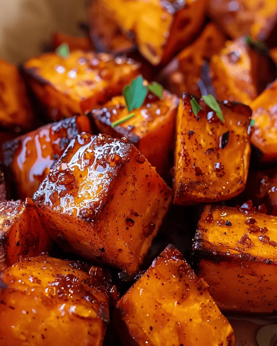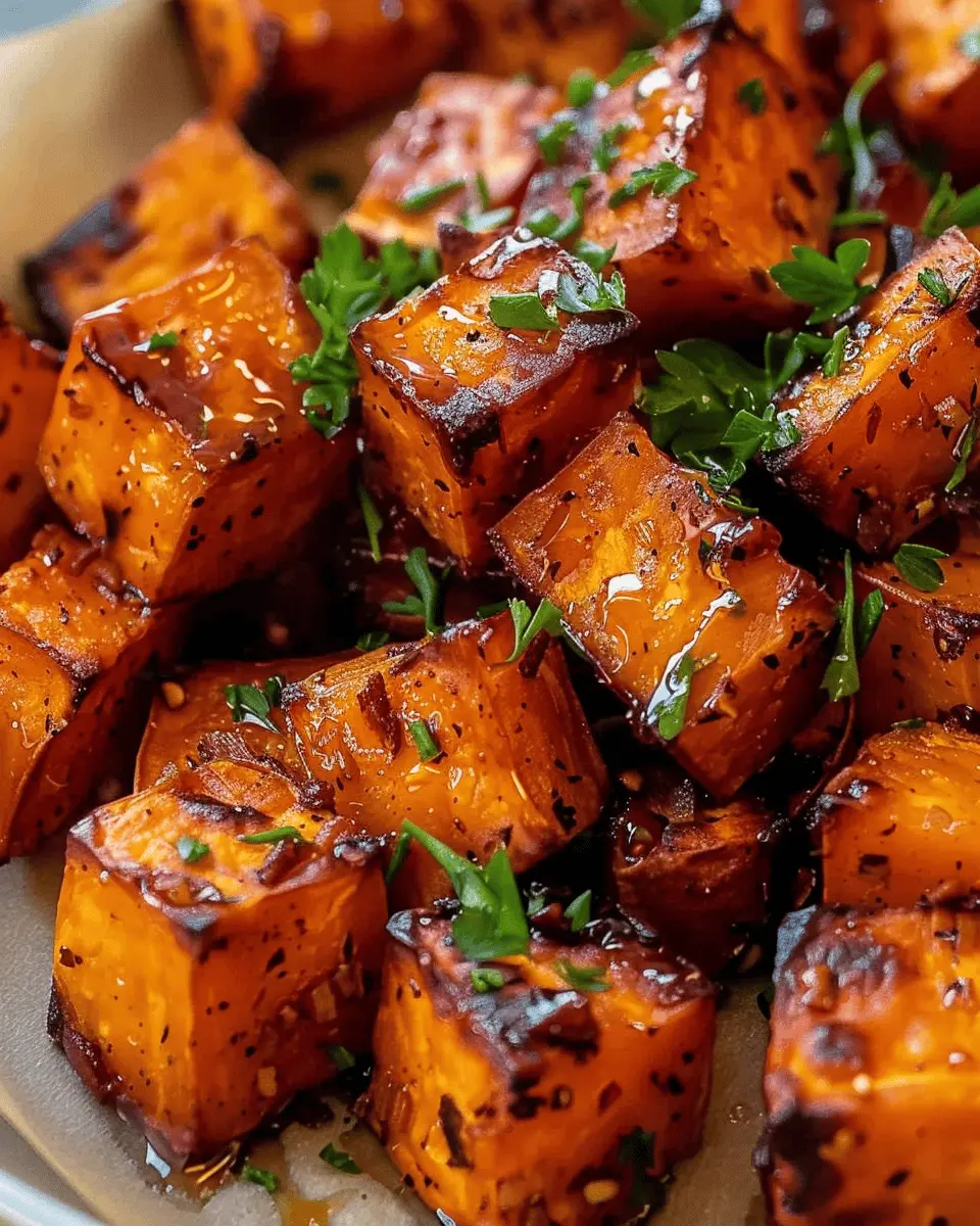 Achieving that perfect texture in your Roasted Sweet Potatoes with Cinnamon & Honey is key. To ensure they come out crispy on the outside and tender inside, use a high oven temperature—around 425°F (220°C)—which promotes caramelization. Toss the sweet potatoes in olive oil liberally; this helps create that desired crispness. Don’t overcrowd your baking sheet—leave space between the cubes to allow for even roasting.
