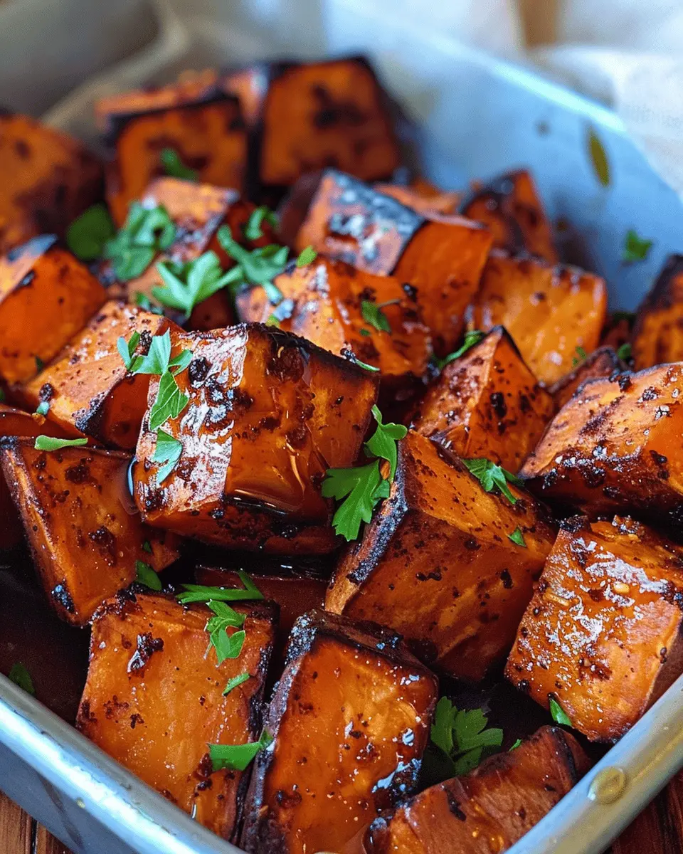 When your sweet potatoes are tender and gloriously caramelized, take them out of the oven. A sprinkle of fresh herbs like parsley or cilantro can add a pop of color and extra flavor—just make sure to add them right before serving to keep them fresh.