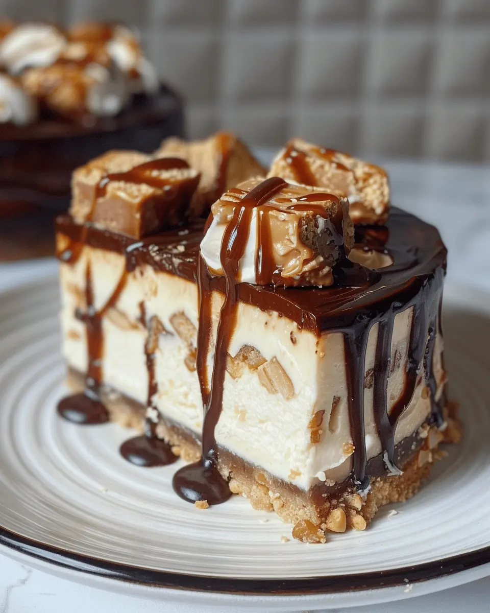 This indulgent Snickers cheesecake combines creamy cheesecake with the rich flavors of Snickers bars, creating a dessert that is sure to impress.
