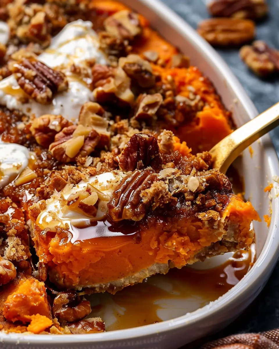 PrintSouthern Maple Sweet Potato Casserole with Turkey Bacon Bliss